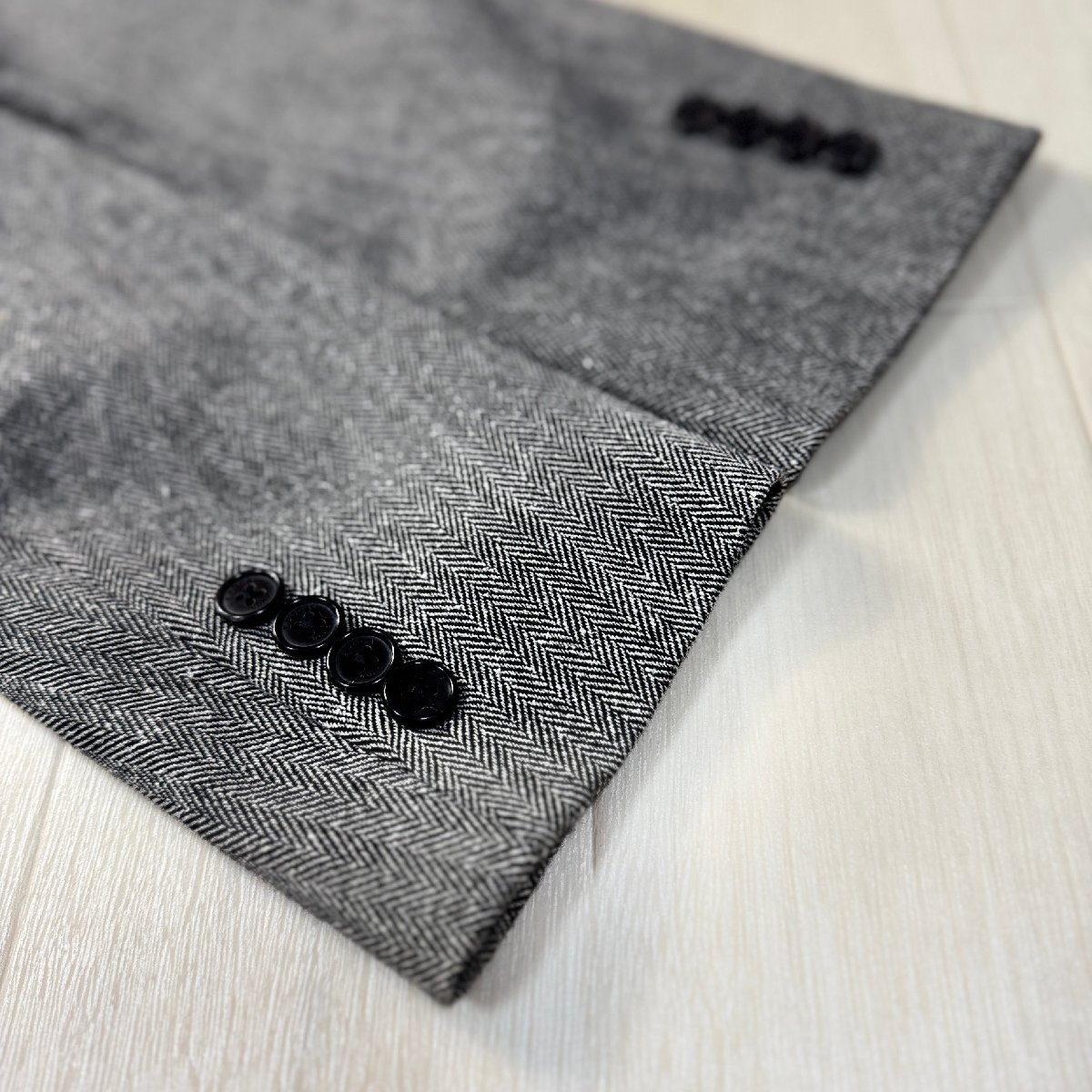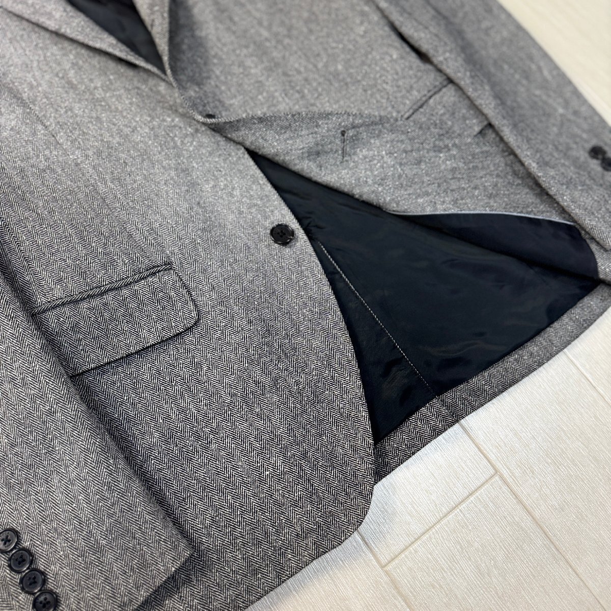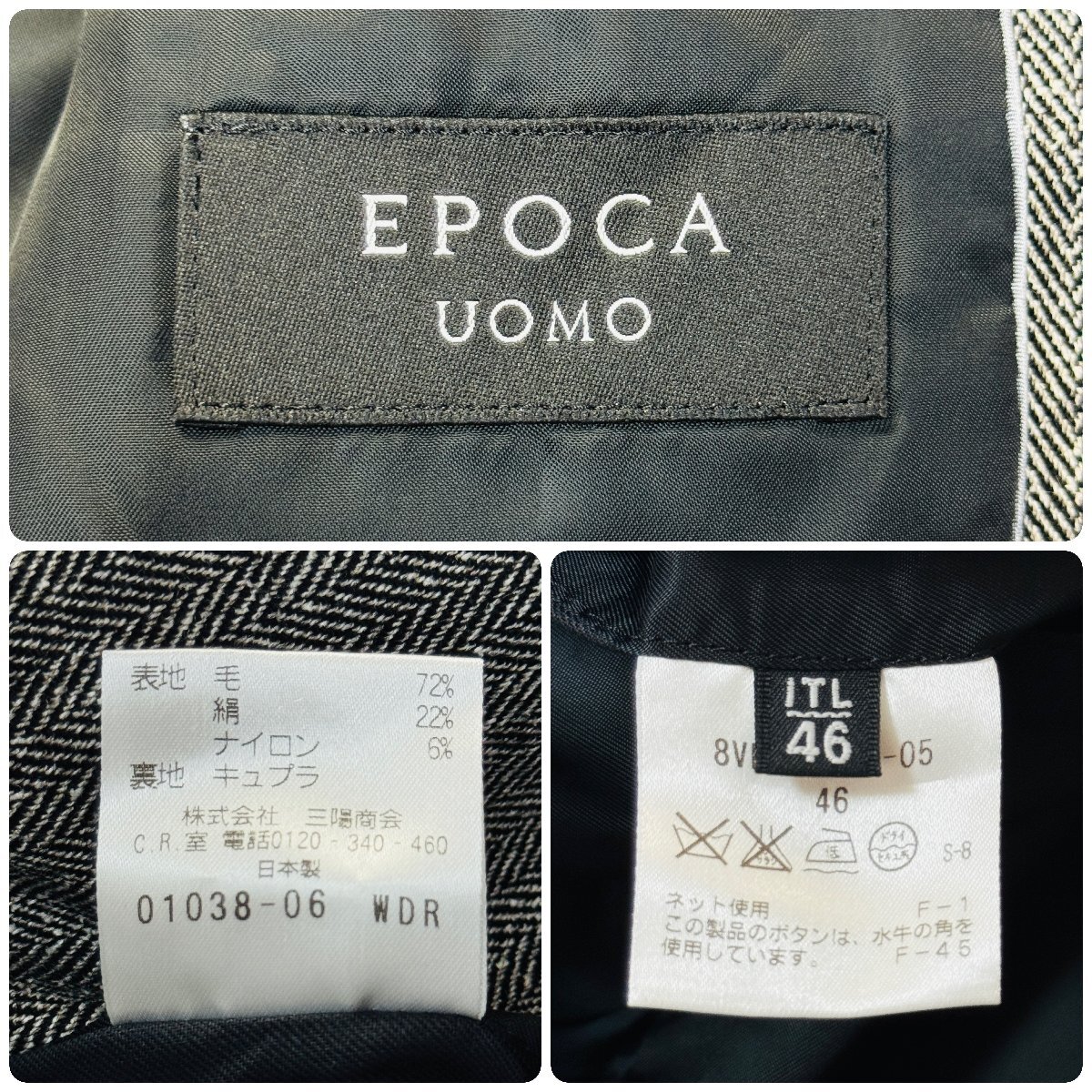 美品/46 M相当★エポカウォモ/EPOCA UOMO メランジツイード ウールジャケット シングル ブレザー ロゴ刻印ボタン メンズ グレー