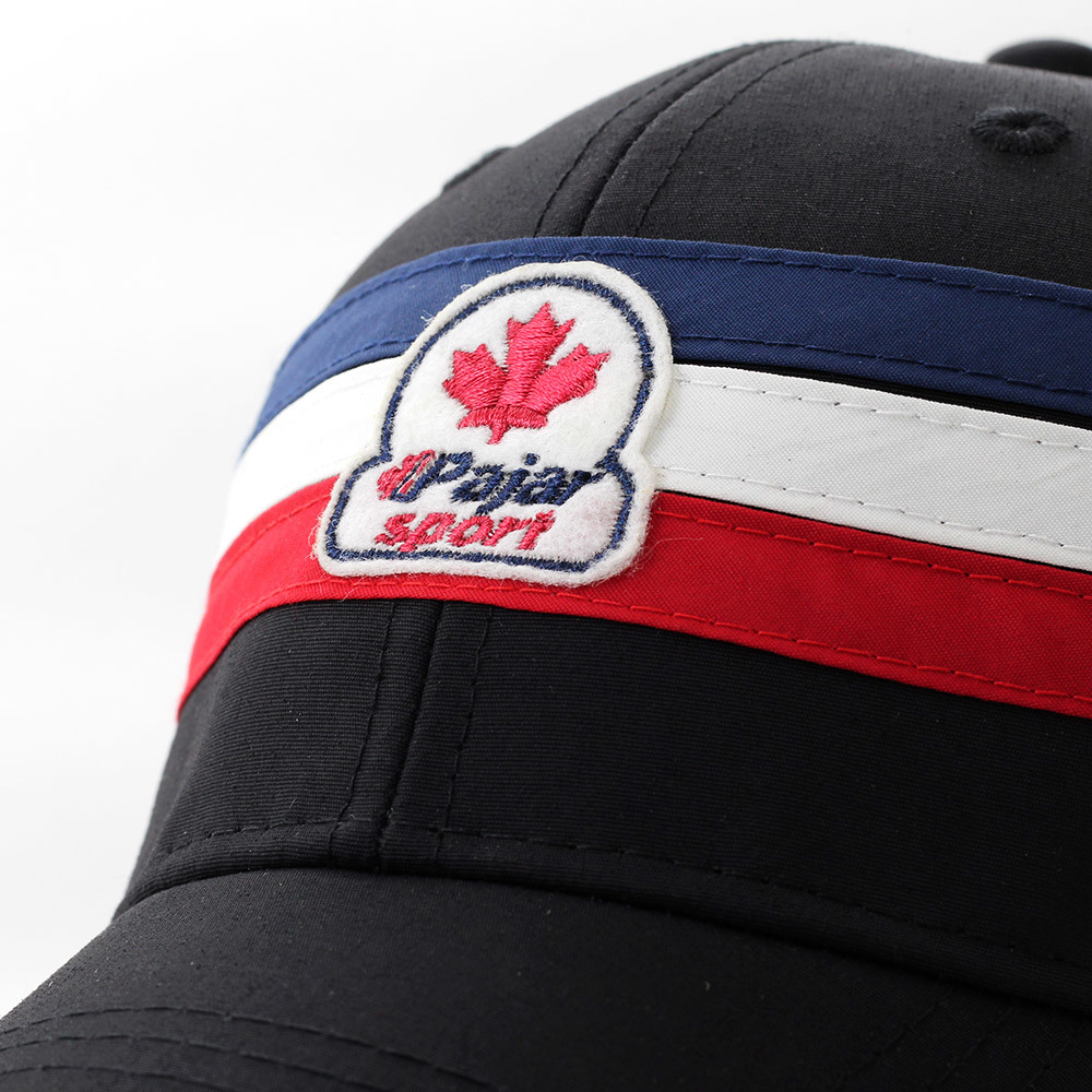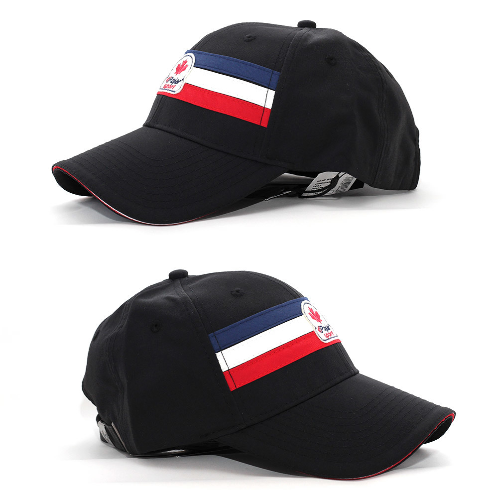 トリコロール柄にメープルのロゴマークのワッペンがアクセントのローキャップ。