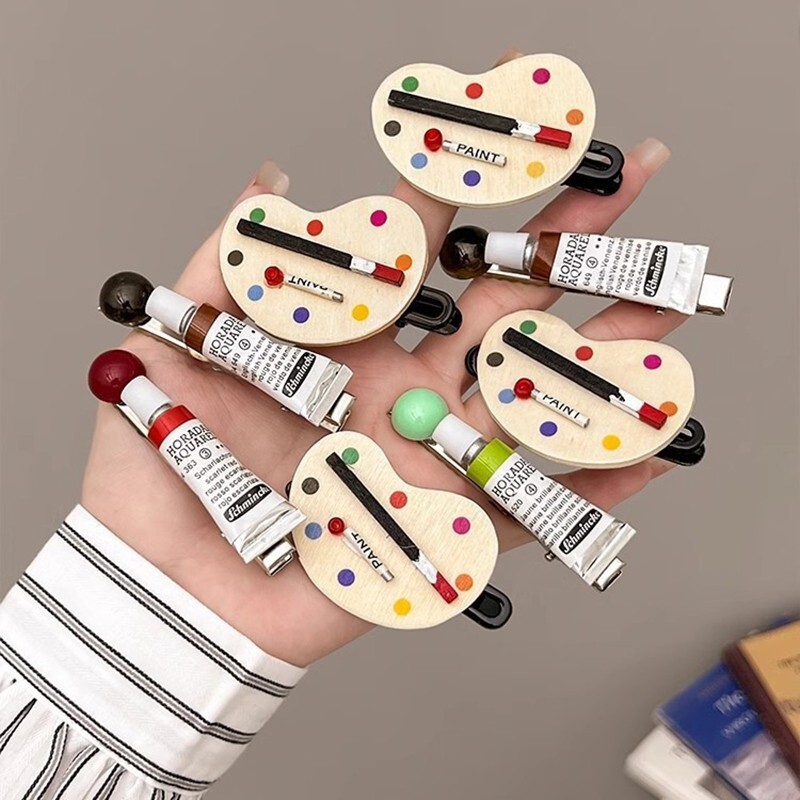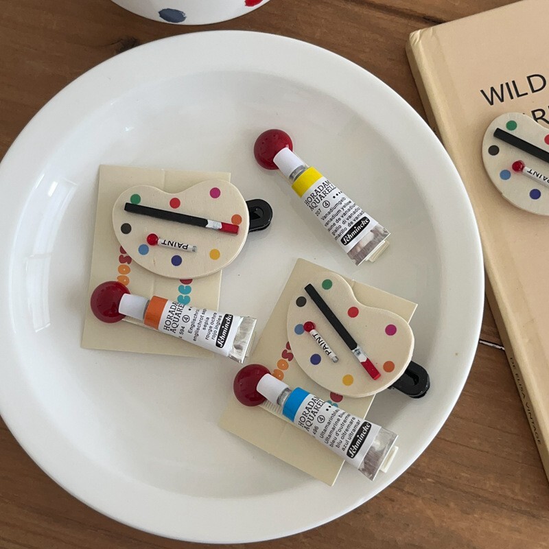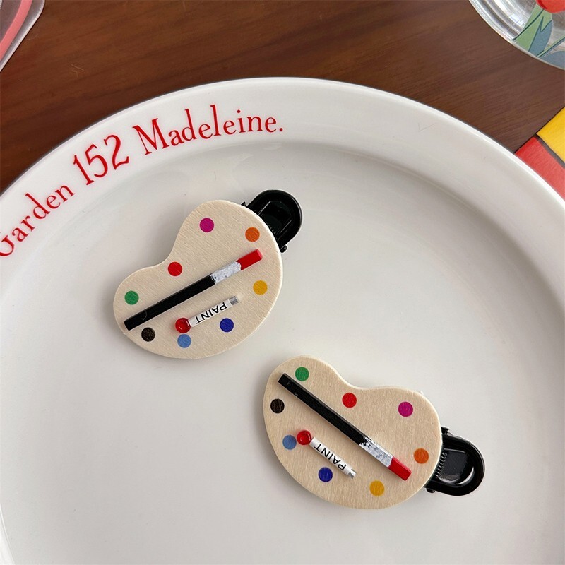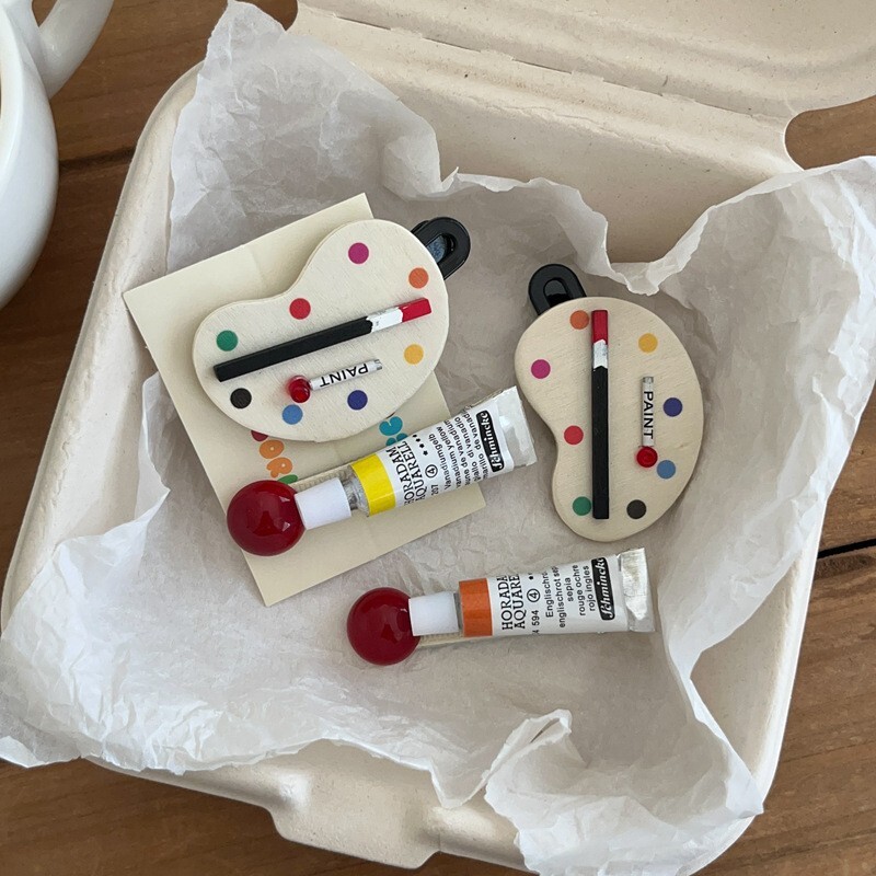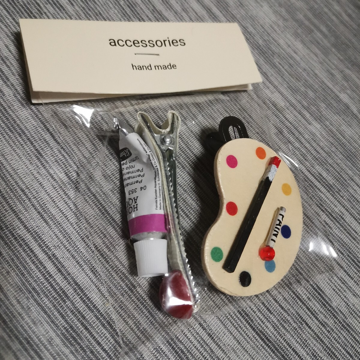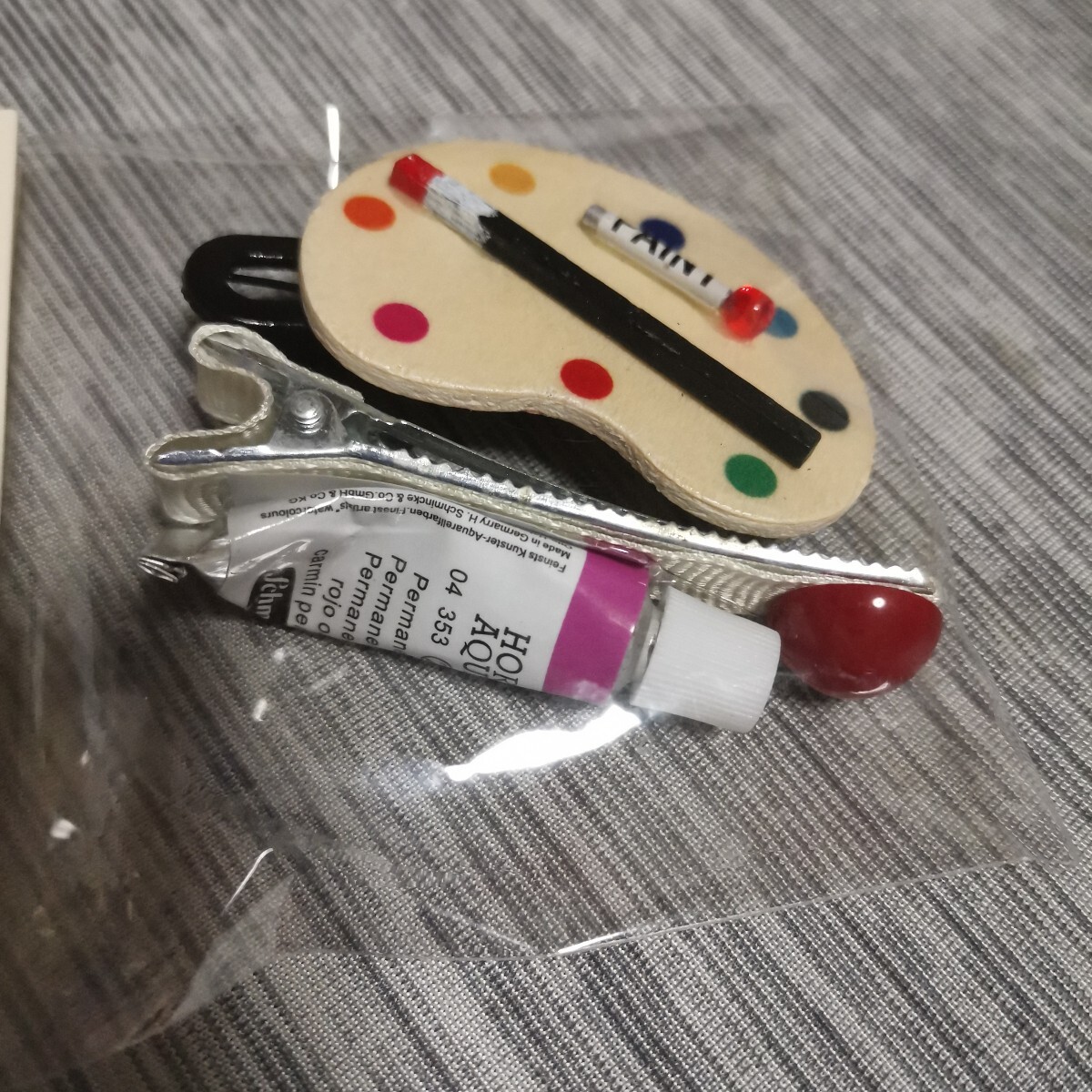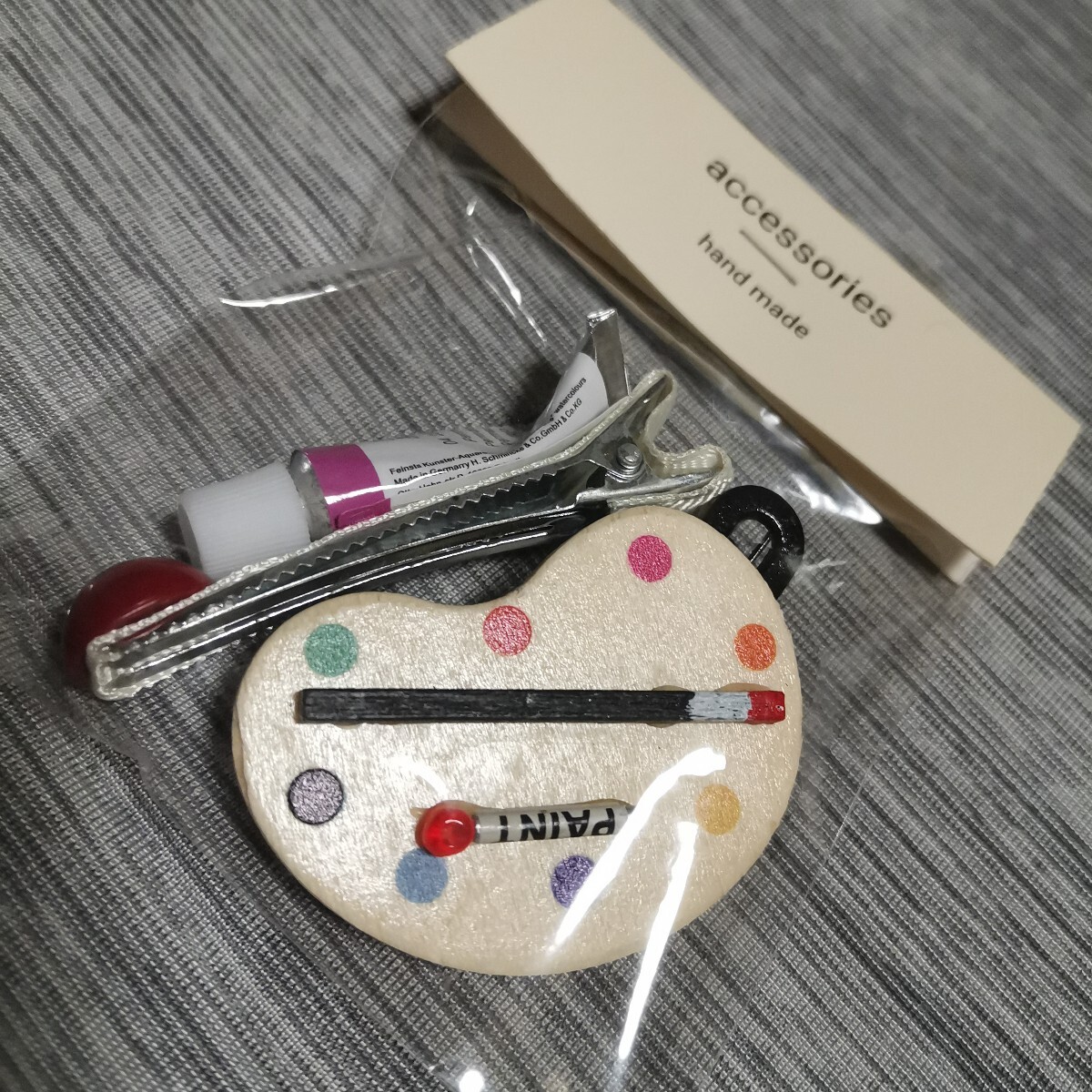 アート ヘアピン 美術 ヘアアクセサリー パレット 絵の具 美術部 芸大 芸術の秋 クリップ2個セット