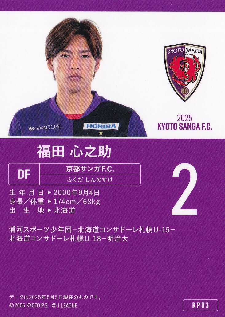 京都サンガFC 2025 オフィシャル KP03 福田心之助