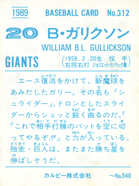 カルビー1989 ガリクソン(巨人) レギュラーカード #312