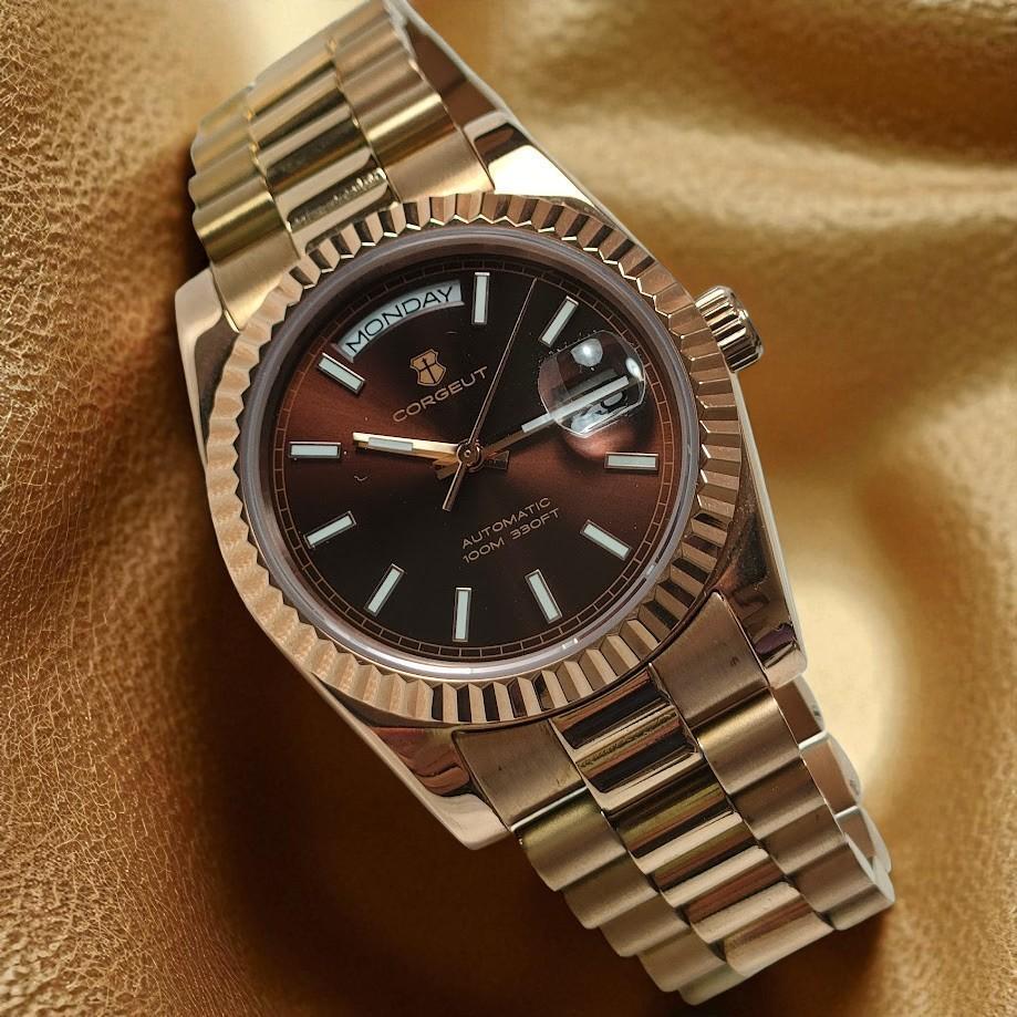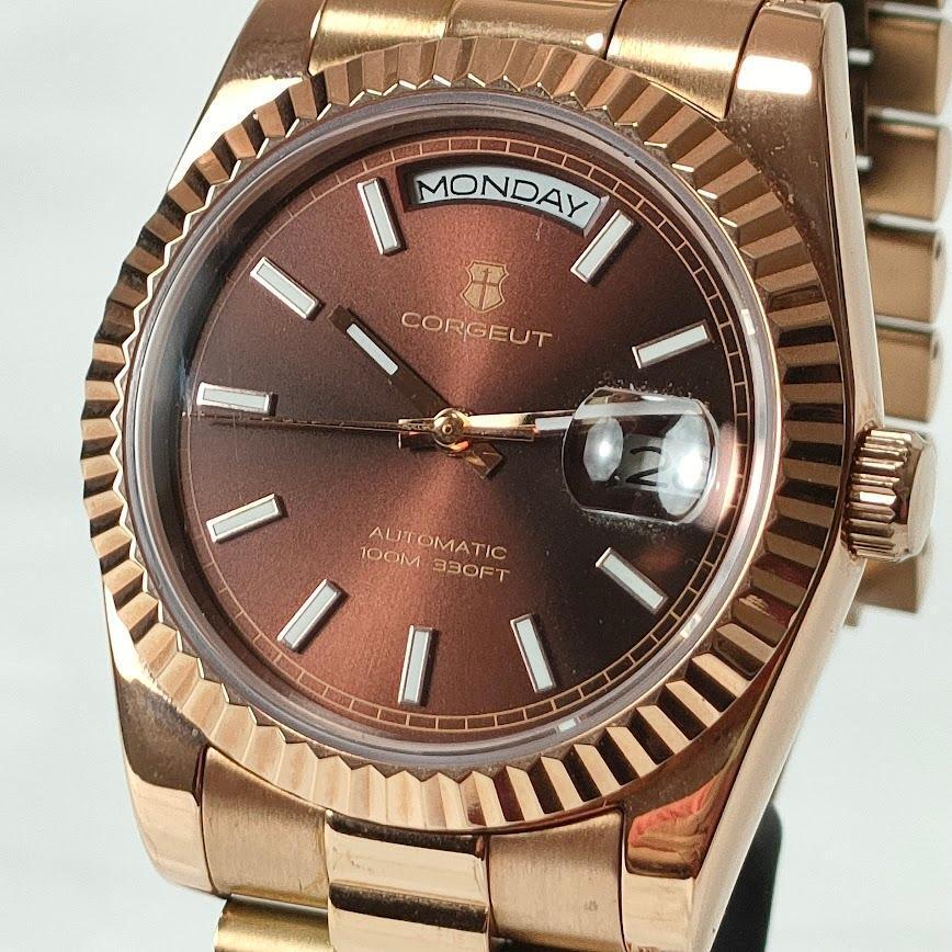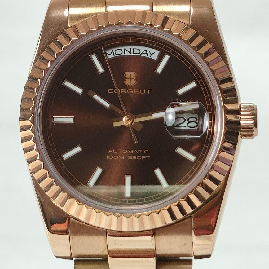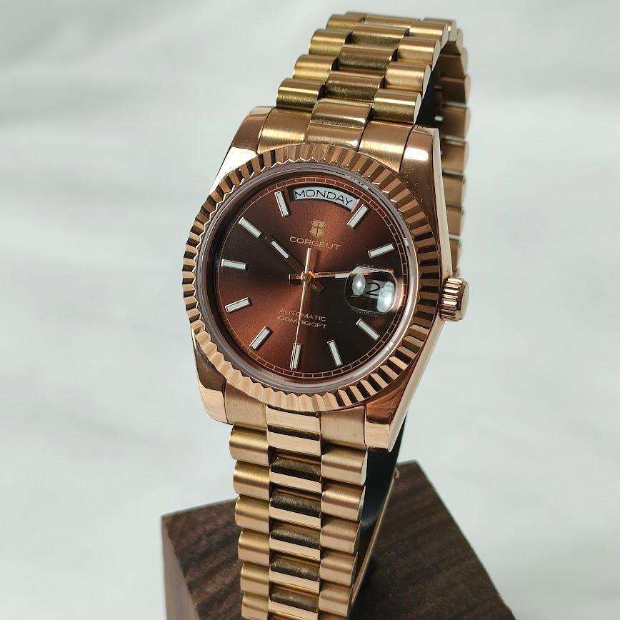 稼働品 CORGEUT コルゲート オマージュウォッチ オートマ ブラウン×ゴールド メンズ 腕時計 ウォッチ