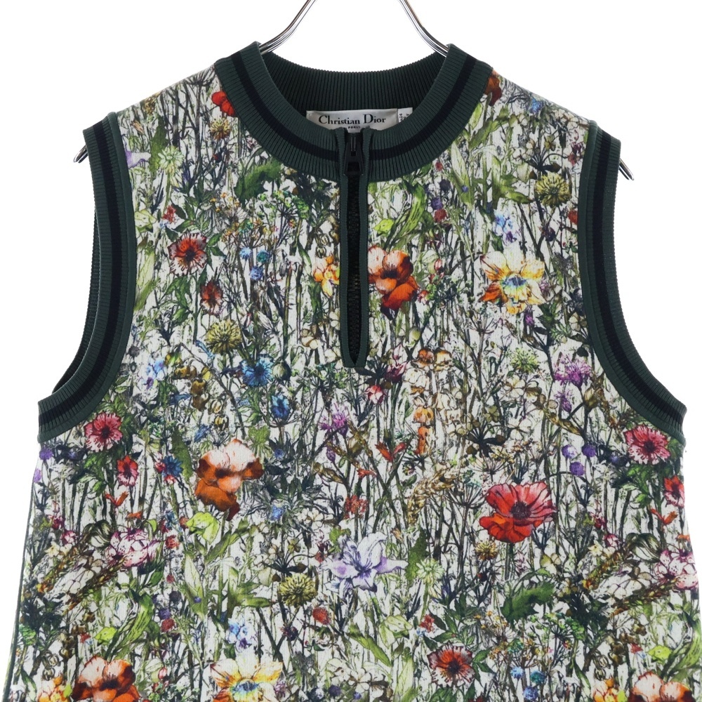 ディオール フラワー総柄プリント ハーフジップ ノースリーブ クルーネック ニット ワンピース レディース 114R02AM719