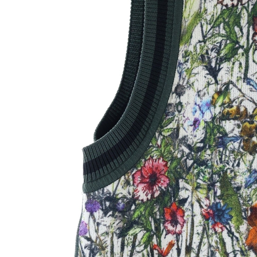 品名フラワー総柄プリント ハーフジップ ノースリーブ クルーネック ニット ワンピース グリーン/マルチカラー レディース 114R02AM719