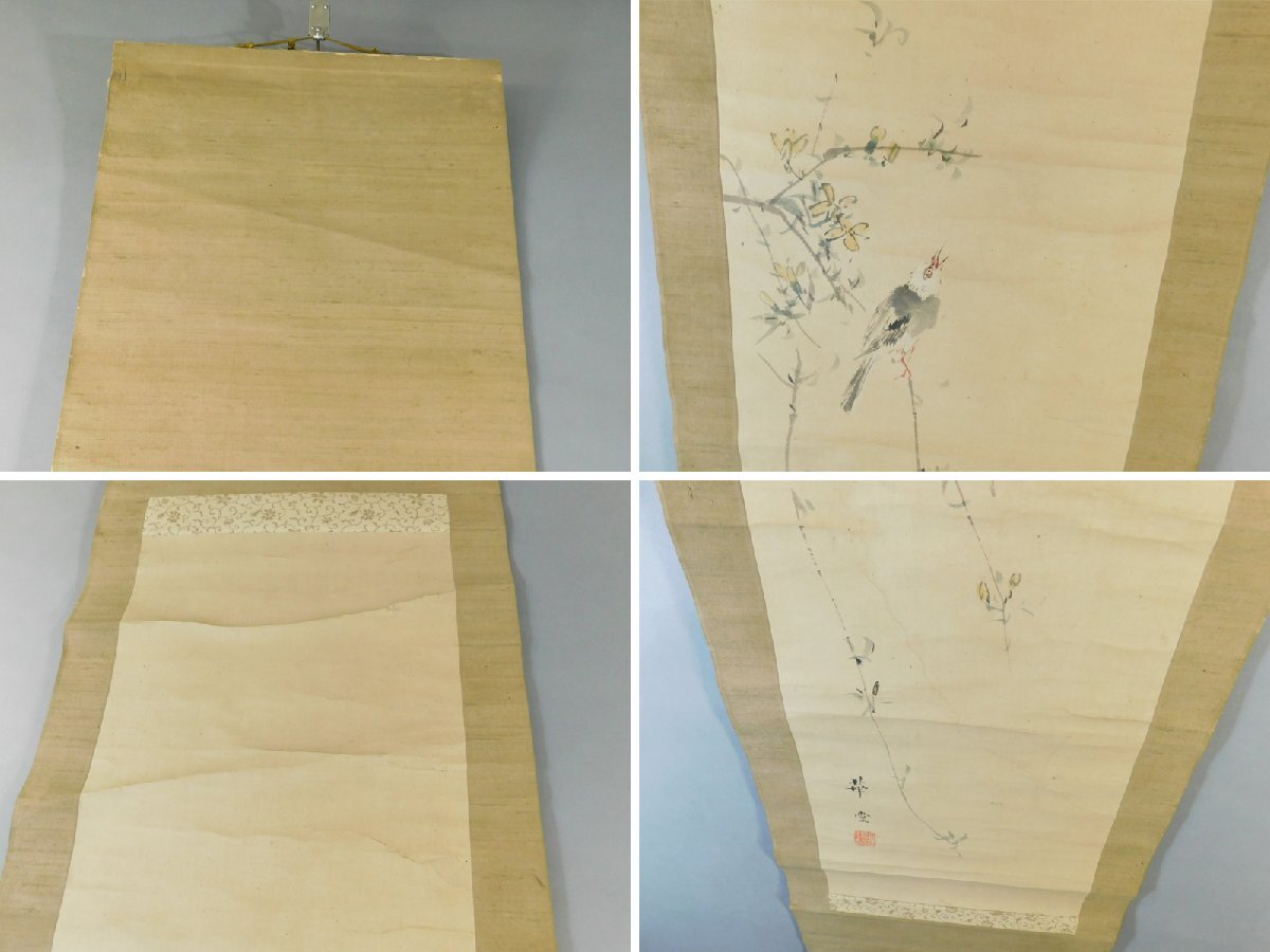 喜田華堂 花鳥図 日本画 紙本 軸装 掛軸 師 岸駒 岸岱 名古屋における岸派の祖 尾張藩御用絵師 OK7433