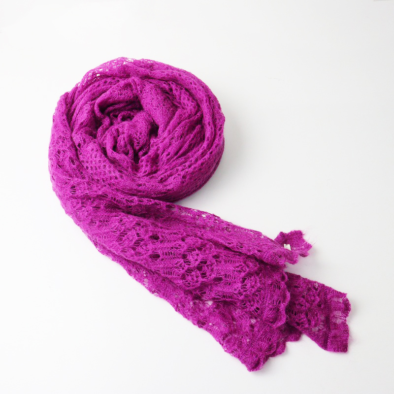 ハグオーワー HUG O WaR 大判モヘヤ透かしニットストール\パープル ショール マフラー【2400014606058】