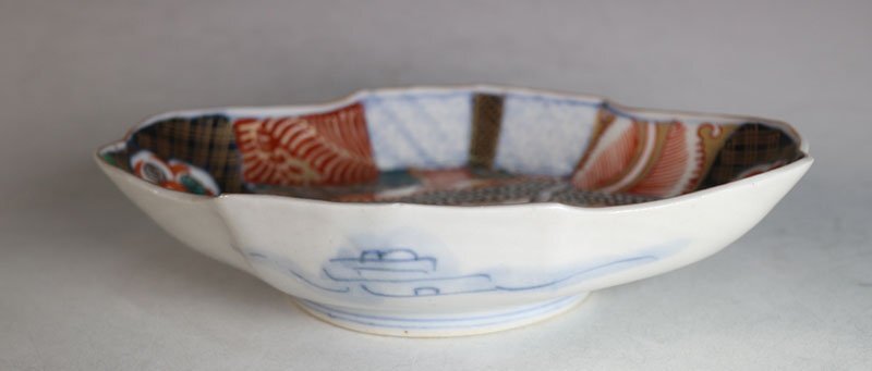 【杜】 伊万里 錦 桜菊の図 変形皿 5客