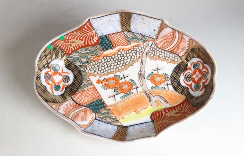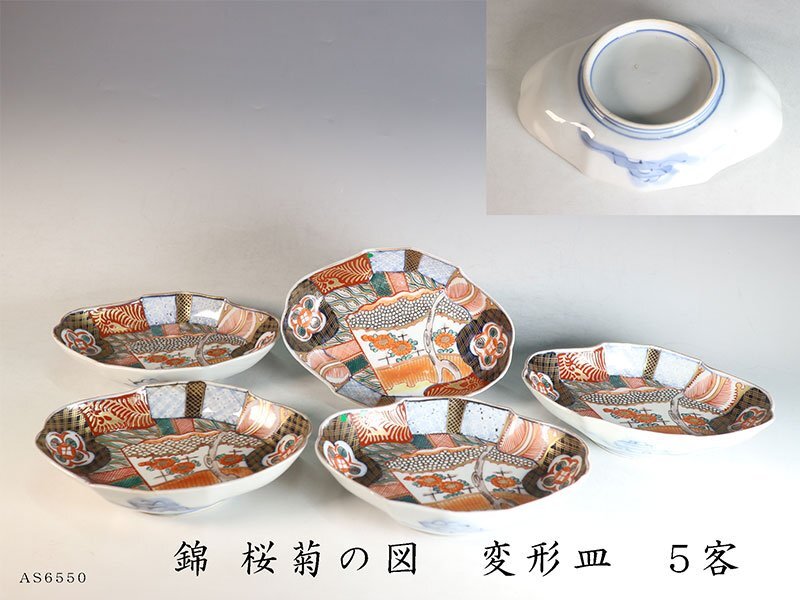 【杜】 伊万里 錦 桜菊の図 変形皿 5客 AS6550