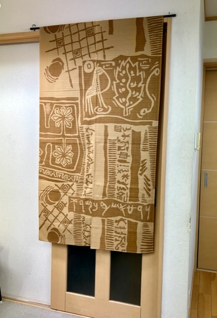 ☆ 珈琲染のれん“キリン柄約巾85cmx丈150cm”訳あり格安にて!! ☆ 101
