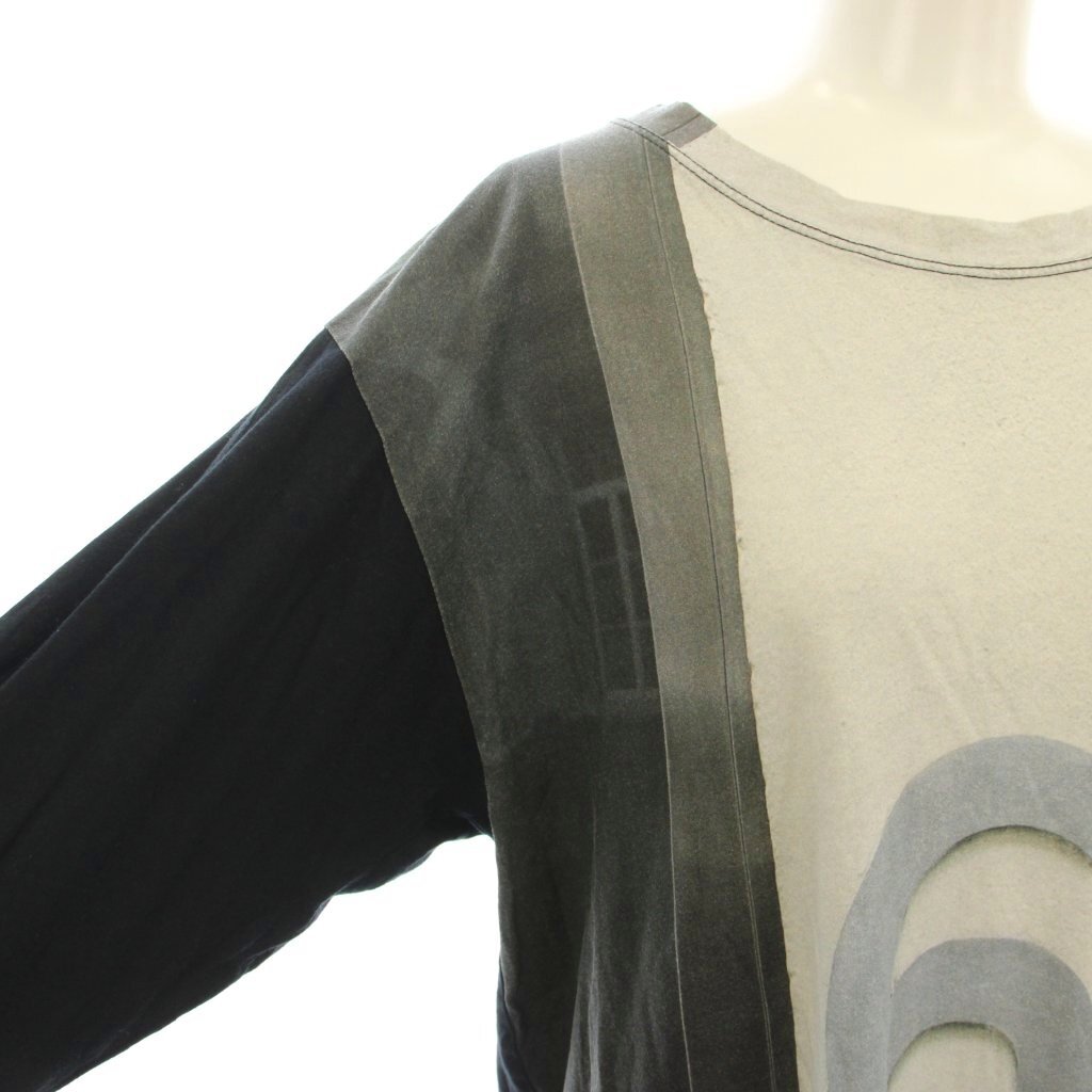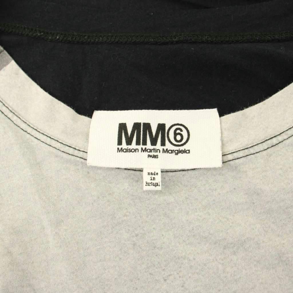 エムエムシックス メゾンマルジェラ Tシャツ カットソー 長袖 クルーネック ロゴ プリント M 黒 ブラック グレー S52GC0017