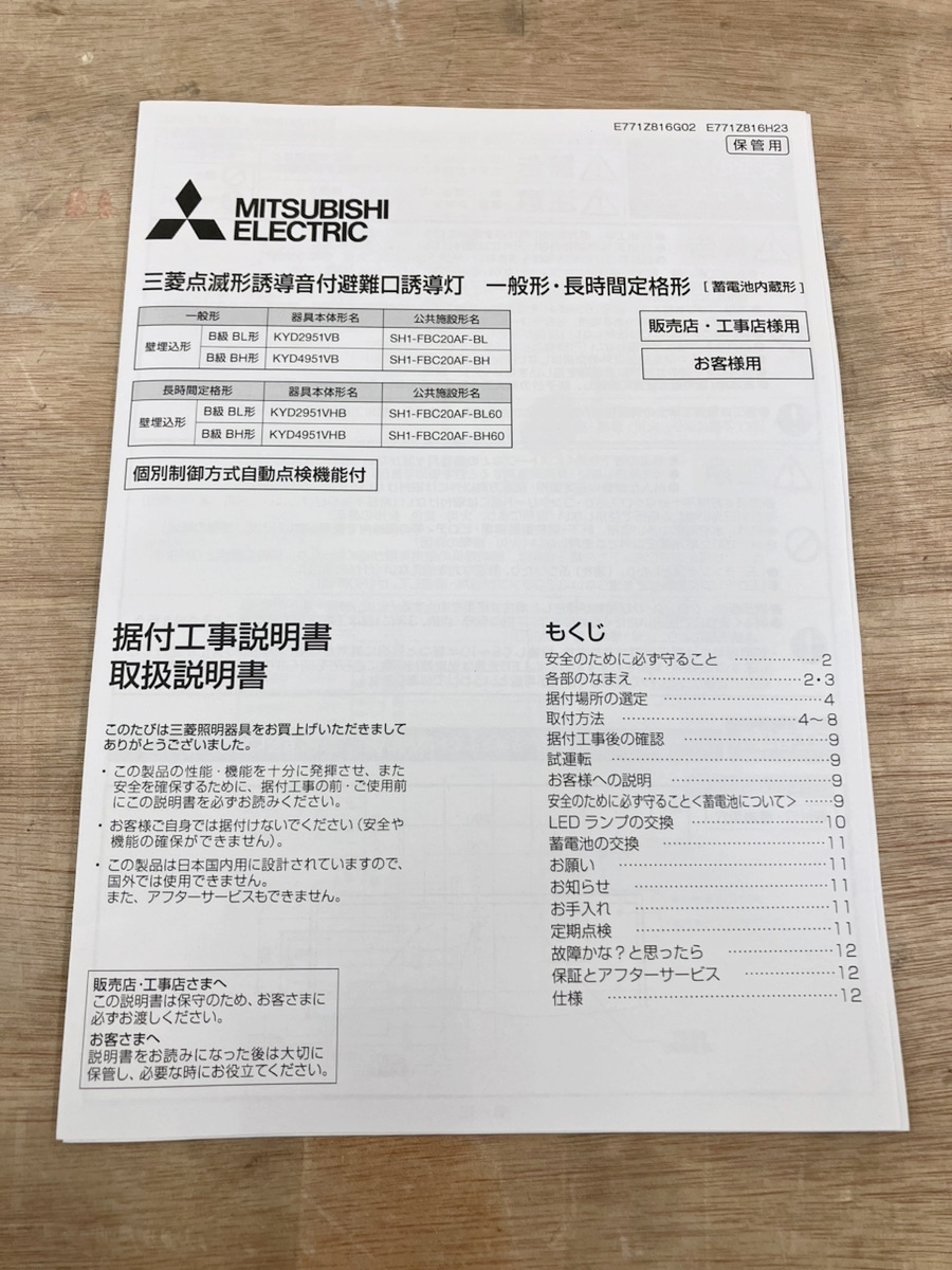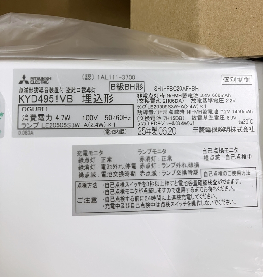 G-0【未使用】三菱電機 三菱点減形誘導音装置付避難口誘導灯 埋込形 本体のみ KYD4951VB B級BH形 埋込形 100V 50/60Hz IK0919-15xxx4