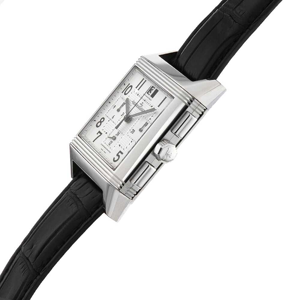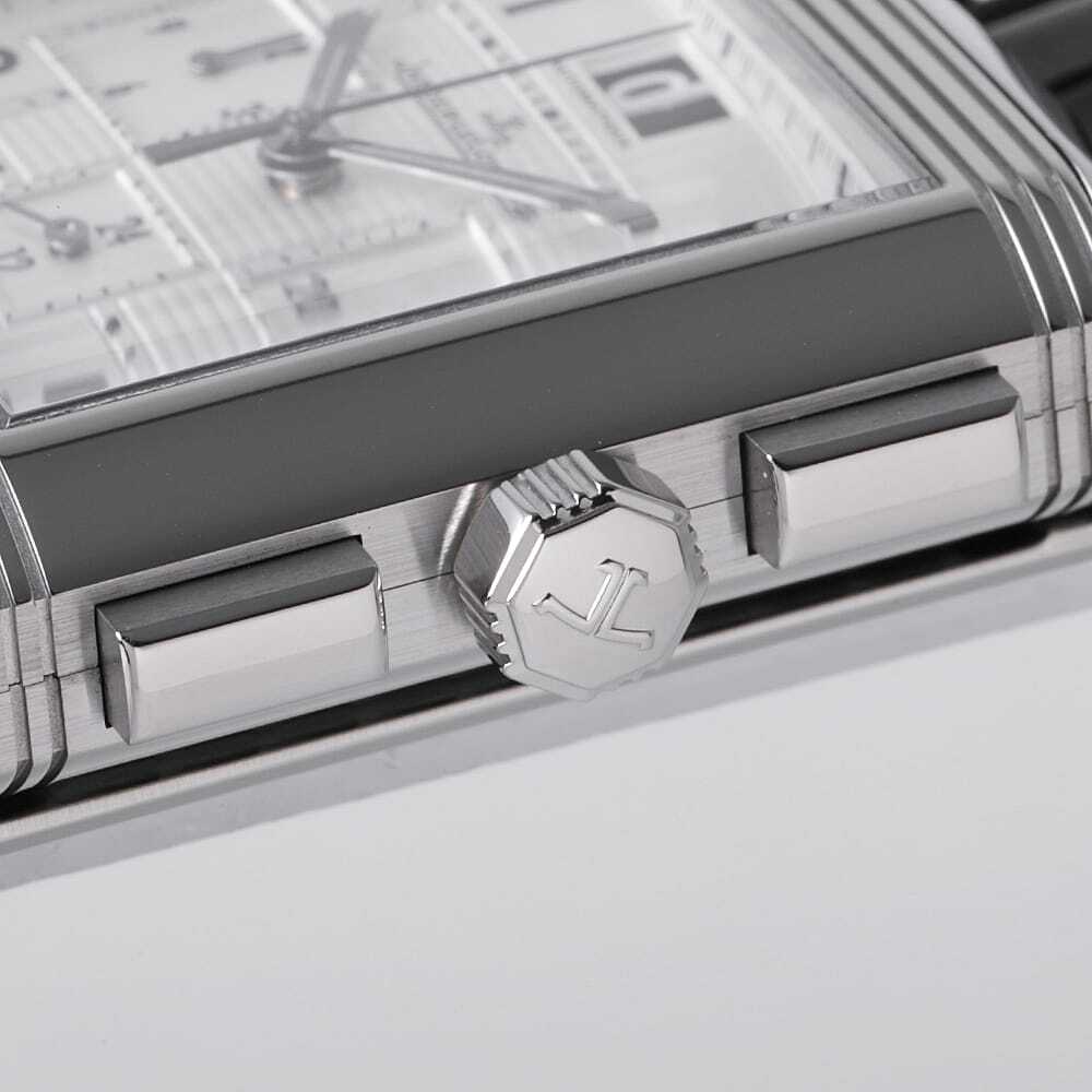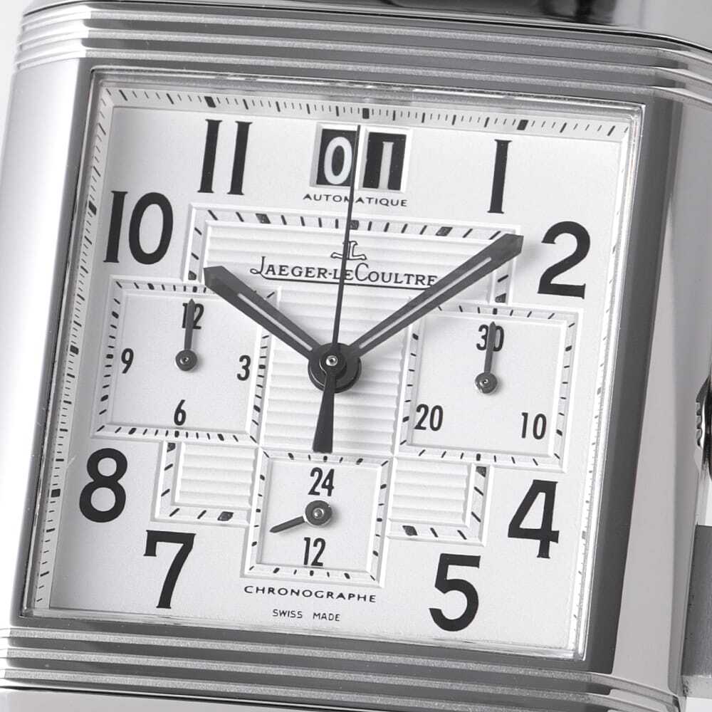 モデル情報 | 1931年に誕生した"レベルソ"シリーズのスポーツライン「Squadra(スクアドラ)」の一部で、ポロ選手のために開発された反転式ケースを継承しています。ケースを反転させることで、文字盤を保護するというユニークな機構が特徴です。アールデコ調のデザインを現代的に再解釈し、視認性と機能性を両立。GMT機能により、旅行者や国際的なビジネスマンにも適した1本です。 |