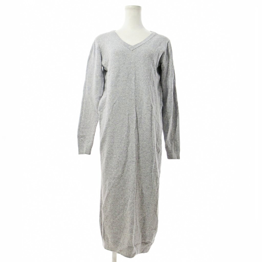 スローブ イエナ SLOBE IENA コットン ニット ワンピース ロング 長袖 カシミア混 Vネック グレー 0912 ■YHS1 レディース