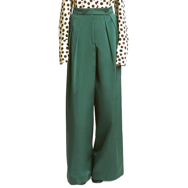 新品 DRIES VAN NOTEN ドリスヴァンノッテン 22AW PAMPLONA 5286 W.W. PANTS 2タックバギーパンツ 34 EMERALD GREEN 定価77,000円 ワイド