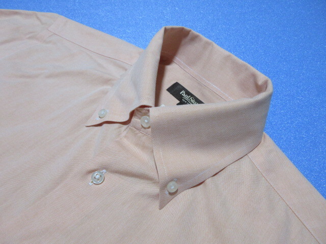 Paul Stuart  ポール スチュアート 半袖BDシャツ オレンジ/ソリッド L フレンチフロント 綿100% 下前立てテープ クリーニング済!