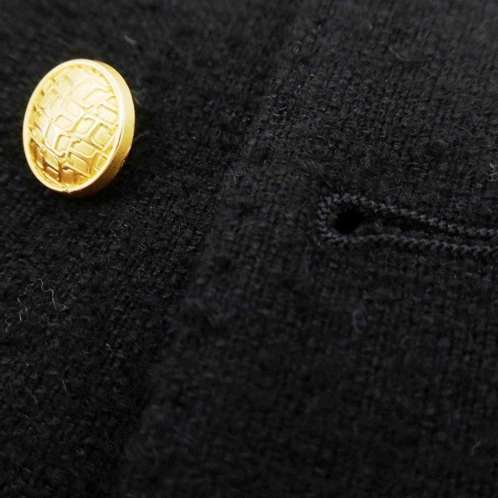 毛羽立ったような独特の起毛感をもったドライタッチのウールポリエステル系素材を用いたダブルジレベストです。遊び心のある素材感とゴールドのメタルボタンがポイントです。