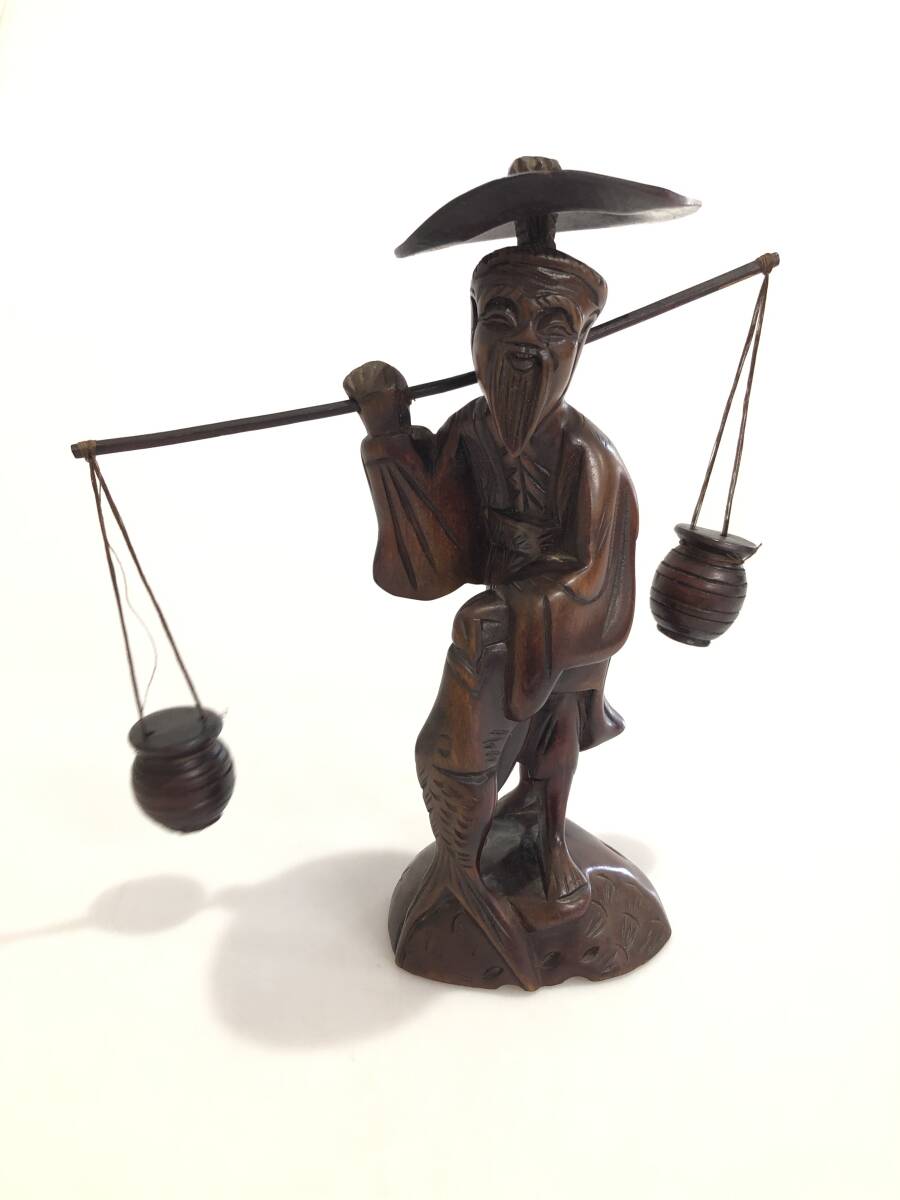 | 商品名 | 木彫 老人 釣り人 置物 |