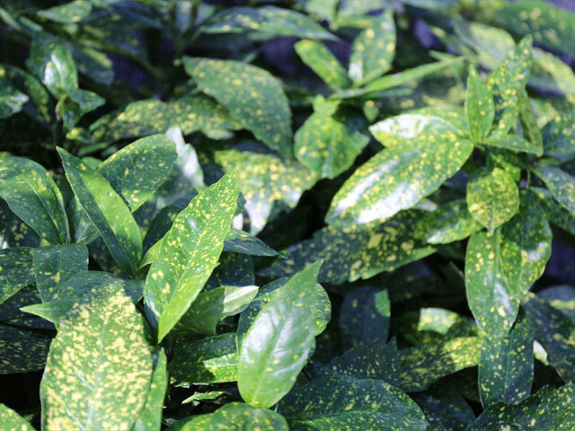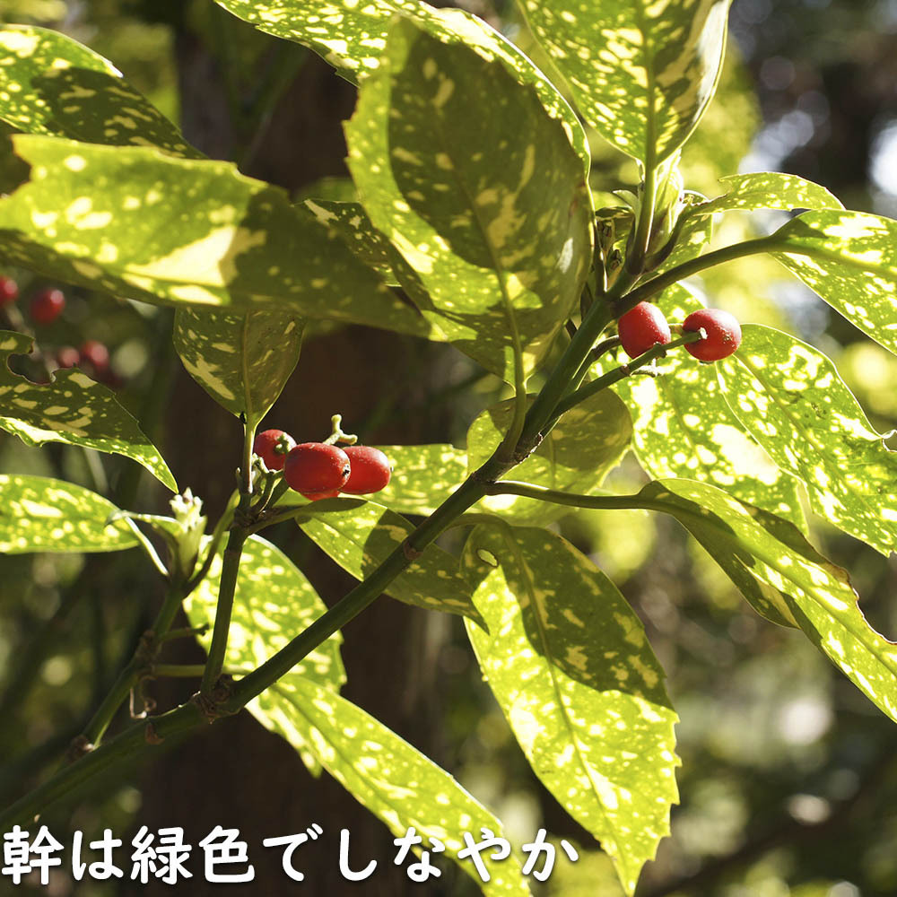 斑入りアオキは代表的な陰樹です。とても青々とした葉が特徴で目隠しにもなります。陰に添えるにはもってこいの樹種です。