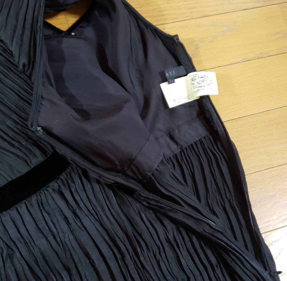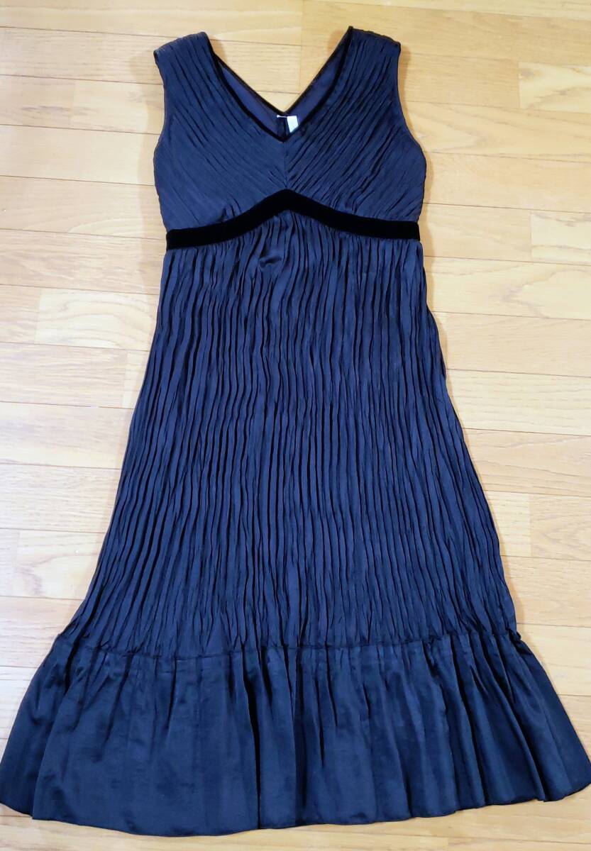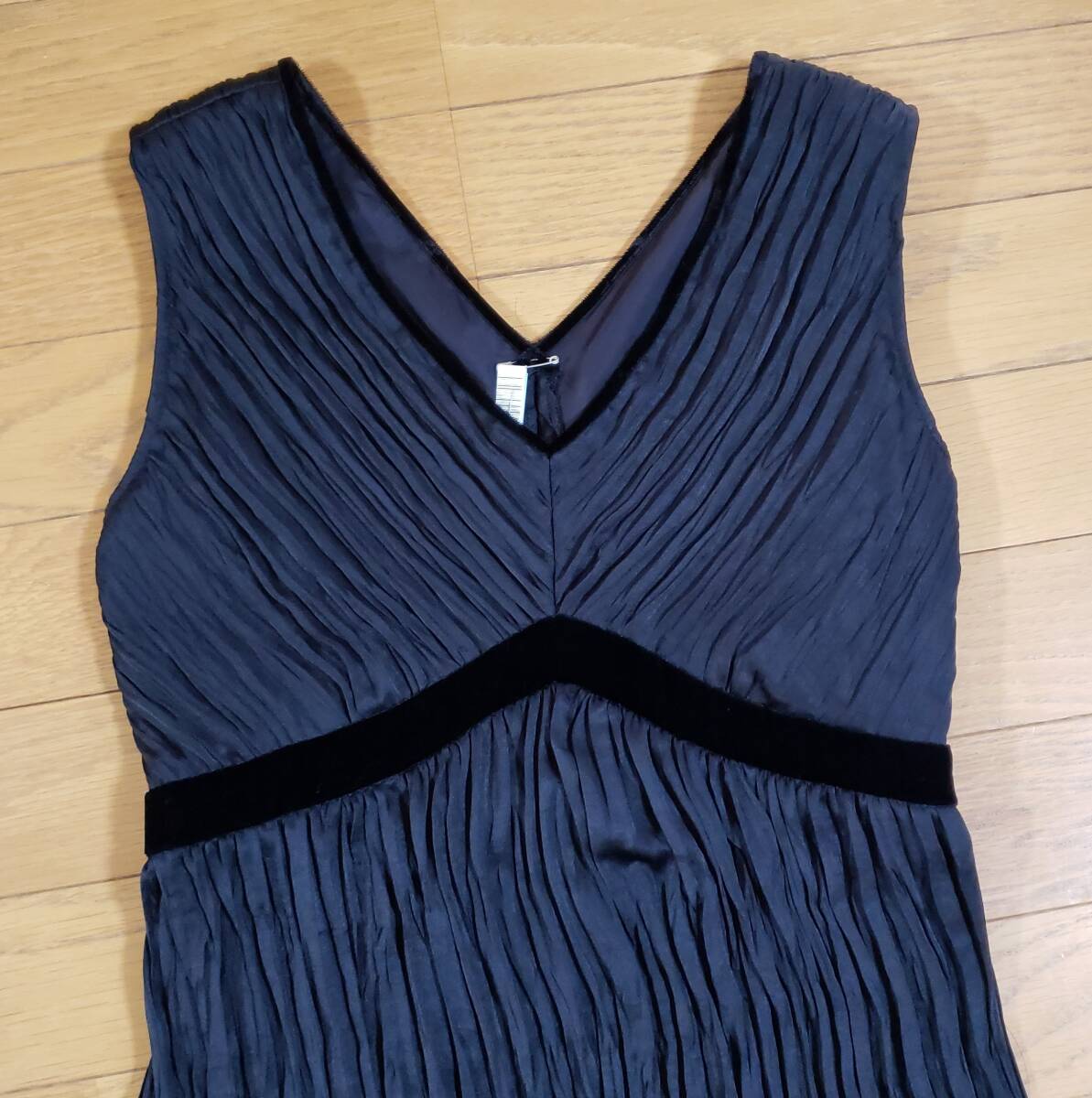 ブラックのノースリーブワンピースは、プリーツ加工が施されており、動くたびに美しいシルエットを演出します。