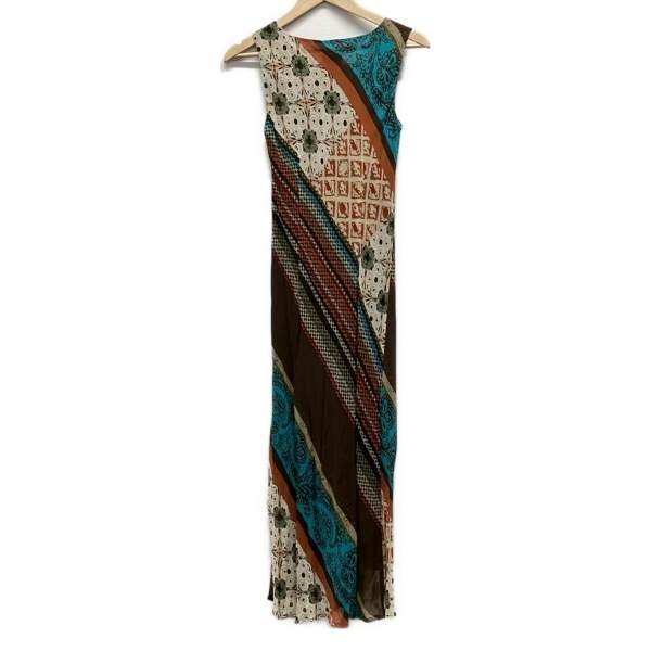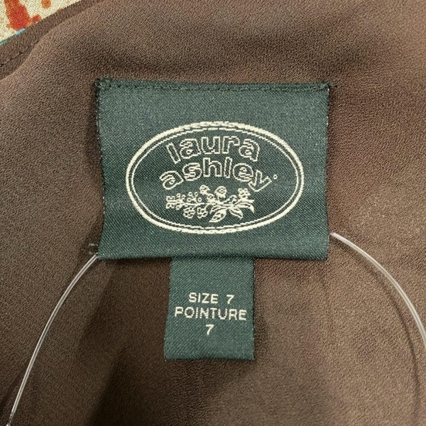 ローラアシュレイ LAURAASHLEY サイズ7 S - ブラウン×アイボリー×マルチ レディース Vネック/ノースリーブ/ロング 美品 ワンピース