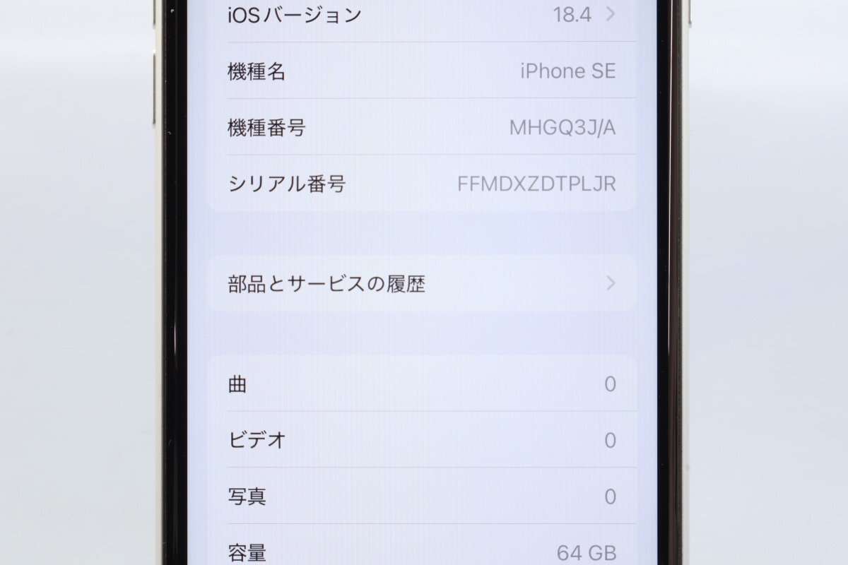 ■機種 : iPhoneSE 64GB (第2世代) White A2296 MHGQ3J/A