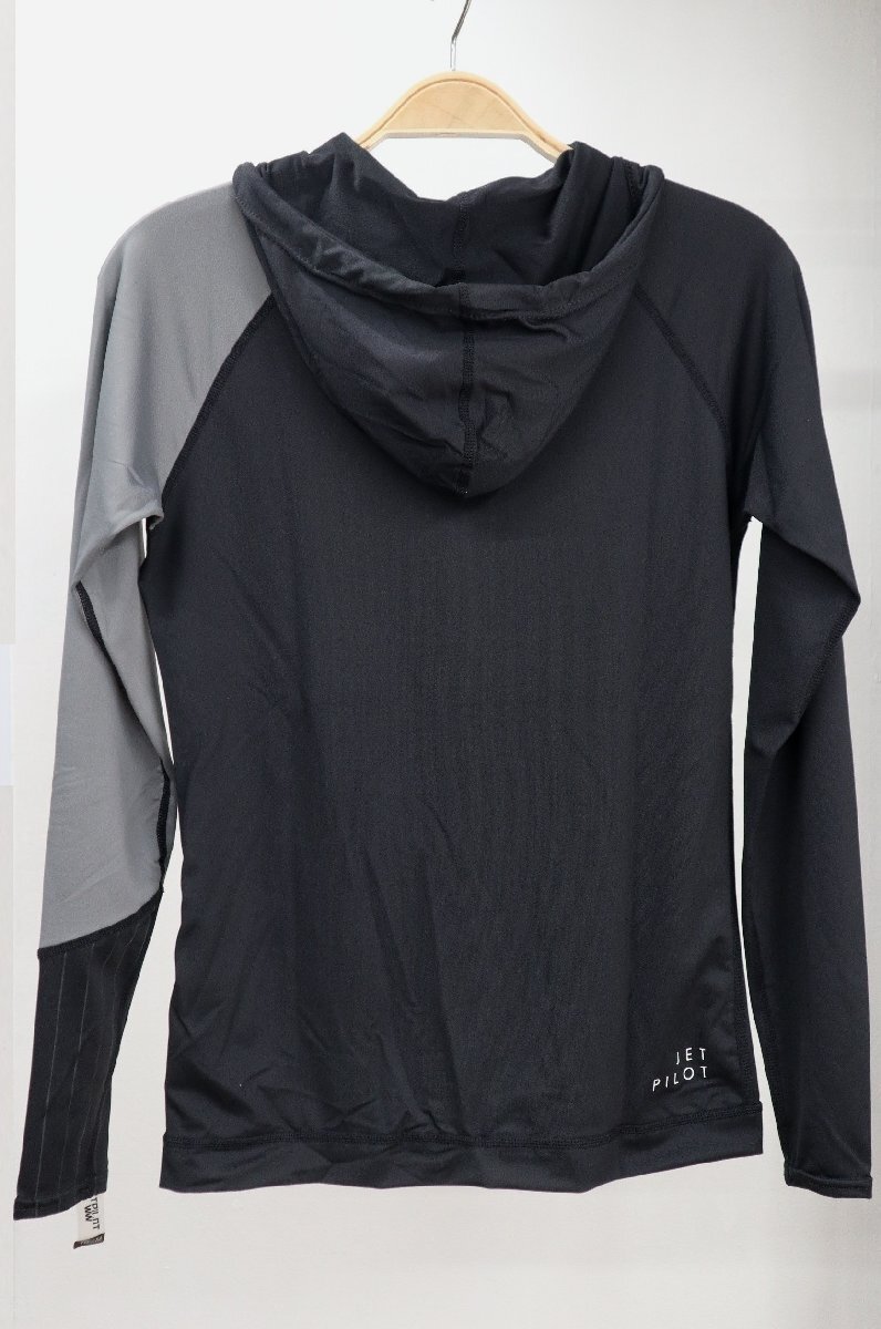 | ☆ フーディー ラッシュガード(レディース) S22513-720 ☆ カラー: ブラック サイズ: 16 / XXL(平置き身幅49cm/着丈67cm) 素材: ナイロン/スパンデックス(伸縮) |