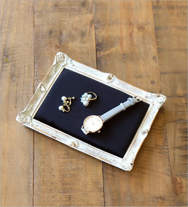| クラシックなイメージの額縁に クッション性のあるベルベット張りの台 大切にアクセサリーを 置けるトレイです お気に入りのピアスやネックレス等々 飾るように置いて楽しめ レトロで重厚感のあるデザインは インテリアとしても◎。 商品名 : レトロなアクセサリートレイ レクタングル 商品番号 : scc8268 全体のサイズ(cm) : 幅21.5×奥行16×高さ2.5 収納サイズ : 幅17×奥行11.5 材質 : 樹脂 綿 重量 : 280g 生産国 : 中国 ※小傷や汚れ風ペイントでレトロな風合いを表現した商品です ※僅かながたつきはご容赦ください ※商品の特性上、色ムラや小傷 がたつき等が見られます ※ディスプレイによる色の違いはご了承下さい |