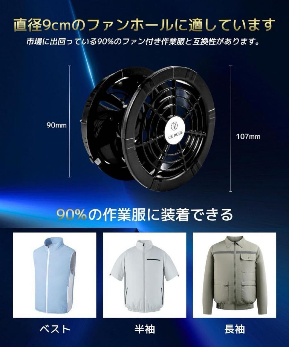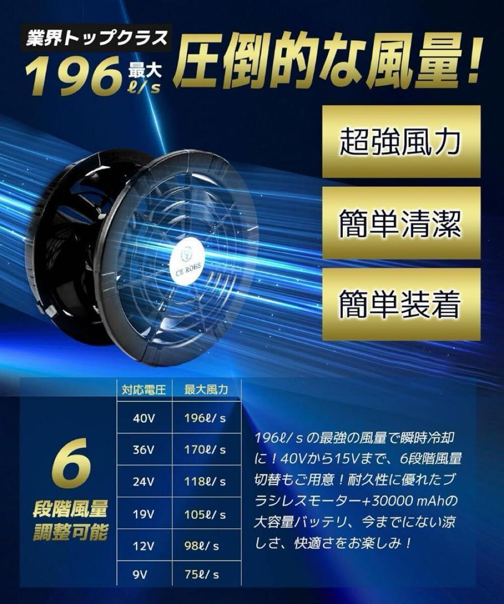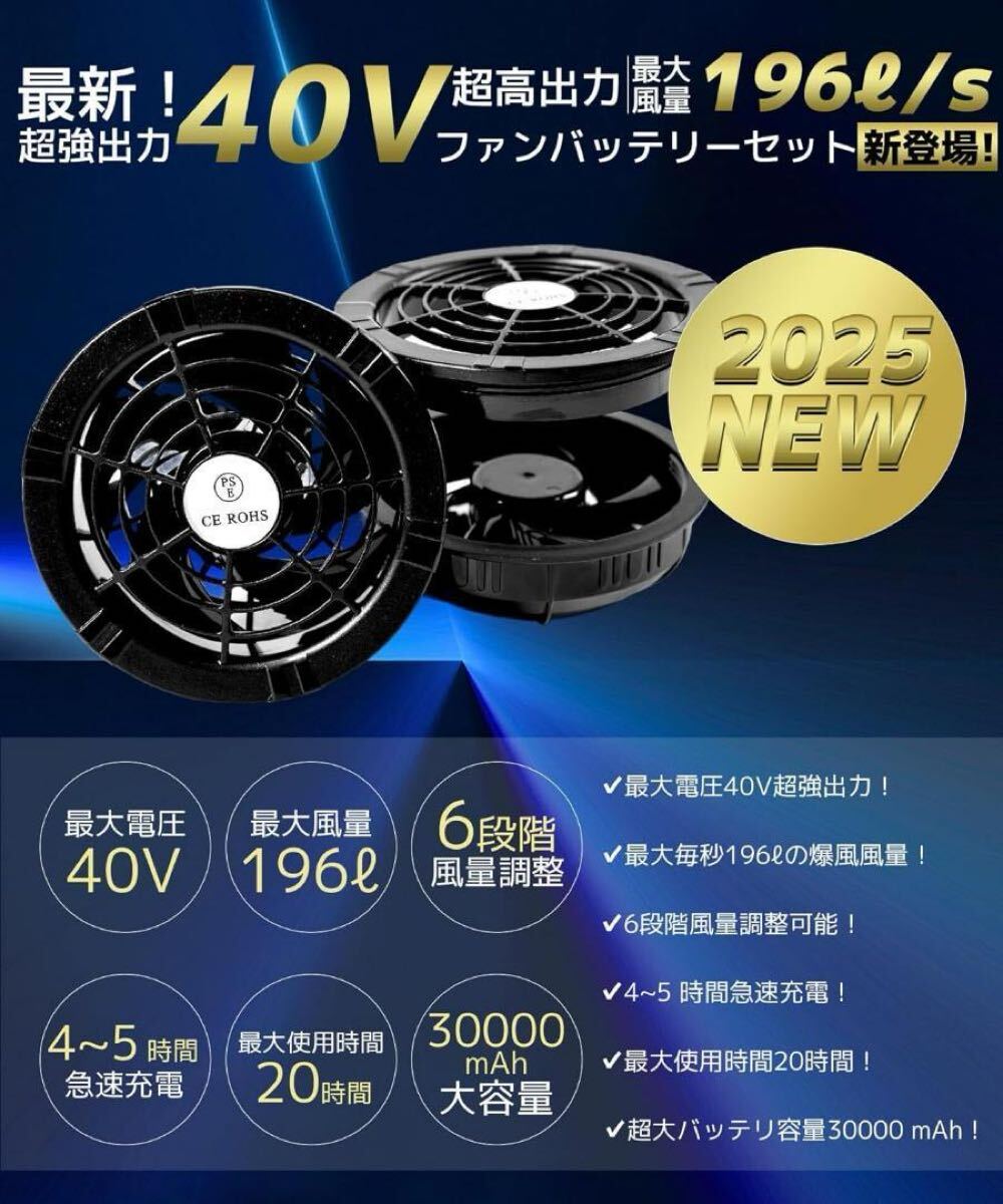 【2025最強業界爆風40V/30000mAh】 空調作業服 ファンバッテリーセット強力送風 ファン40V超高出力6段階風量調節超軽量最大20時間連続使用 バッテリー付き90mm服穴径対応 猛暑対策 PSE認証済