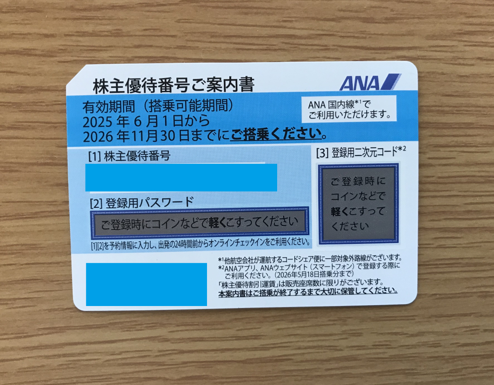 ANA株主優待券1枚 2026年11月30日まで 番号通知のみ