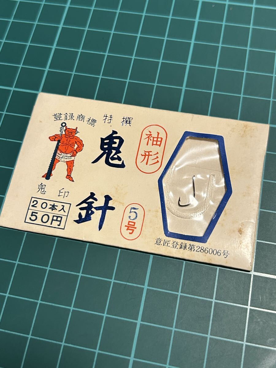 ご覧頂き誠に有難う御座います。鬼印の袖鈎の出品になります。残る鈎は検品で未使用と判断しておりますが、パッケージや中身には保管時に伴う擦れや傷、汚れ等御座います。画像からご判断頂きお取引宜しくお願い致します。
