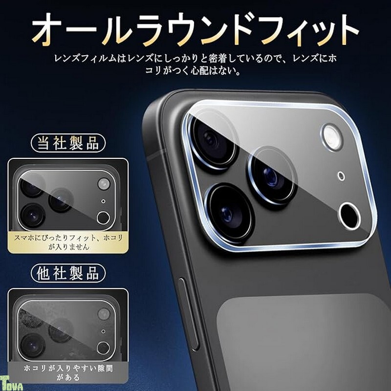 日本製 旭硝子 素材 3枚入 9H硬度 自動吸着 全面保護 アイフォン iPhone 17 Pro カメラ レンズ 保護 フィルム 高透過 貼り付け簡単