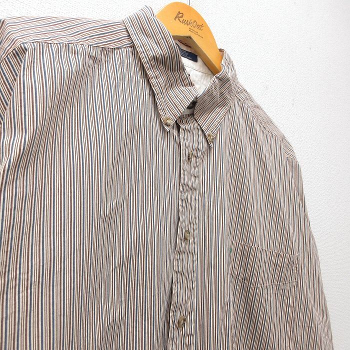【商品名】 XL★古着 トミーヒルフィガー 長袖 ブランド シャツ メンズ 90年代 90s ワンポイントロゴ 大きいサイズ コットン ボタンダウン ベージュ他 ストライプ