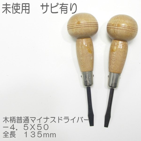 2個まとめて 木柄普通マイナスドライバー -4.5X50 未使用 サビ有り