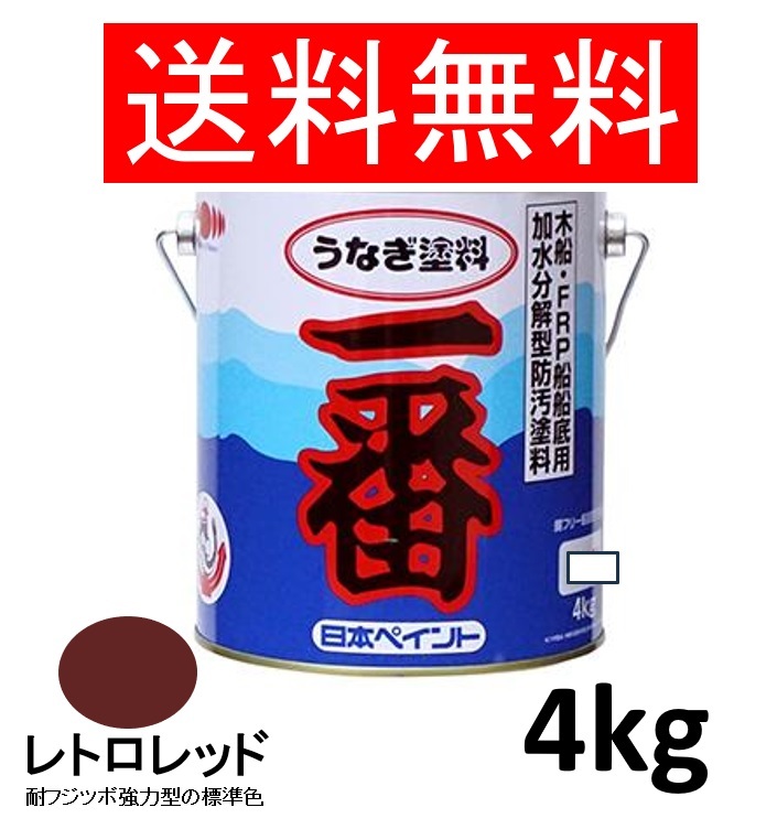 ニッペ ペンキ 塗料 ラッカー つやなし 屋外 アクリル 船舶用塗料 船底 マリン ヨット うなぎ塗料一番 4kg レトロレッド 日本製 4547163000080