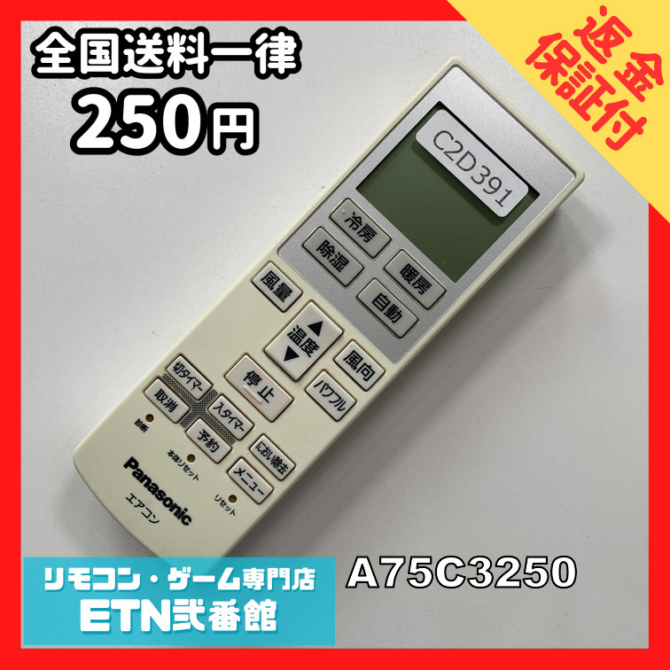 C2D391 【送料250円】エアコン リモコン / Panasonic パナソニック A75C3250 冷房 暖房 動作確認済み★即発送★