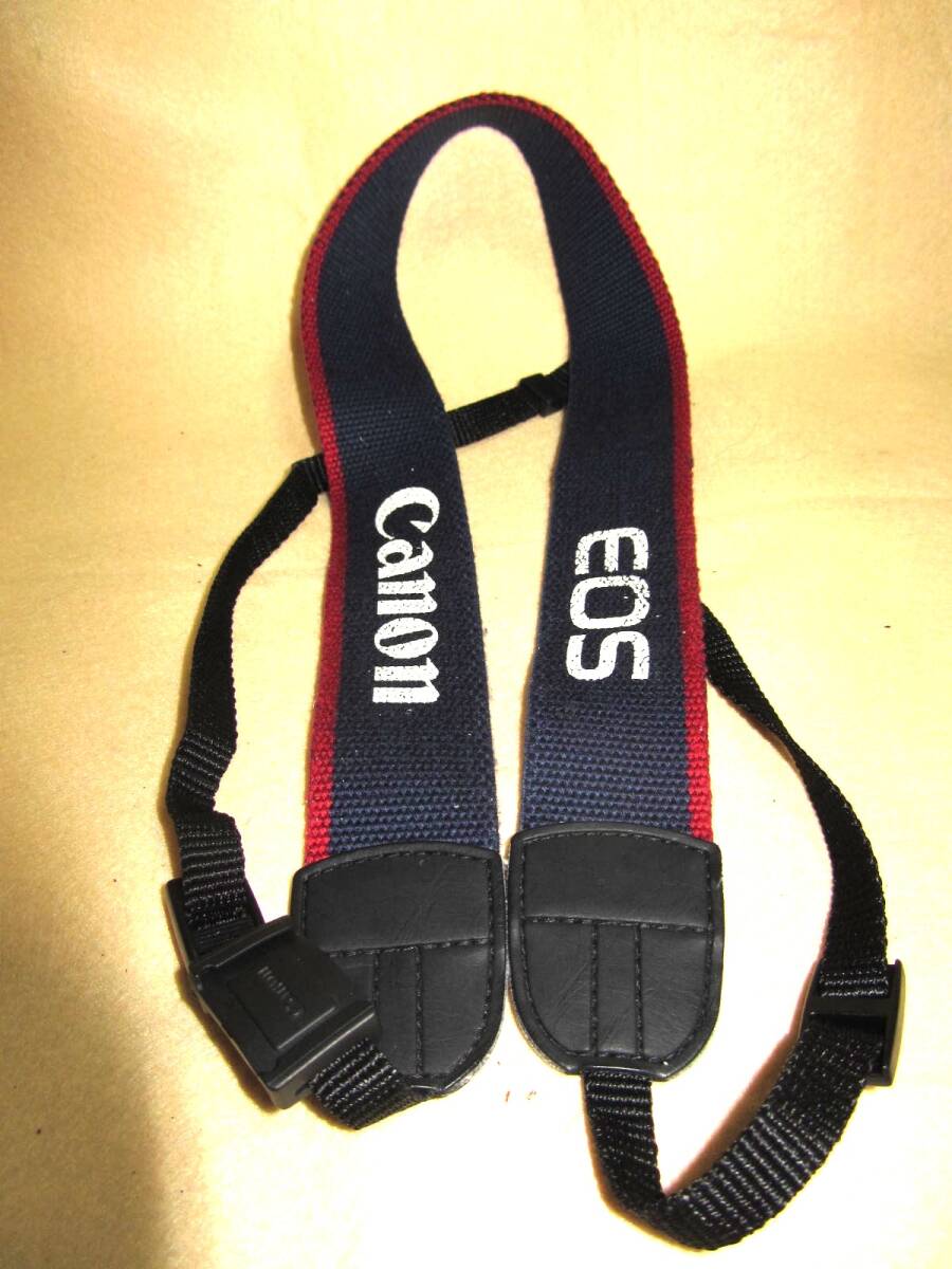 :送料無料: キャノン EOS 布製幅広ストラップ  紺地に赤のストライプ   no10