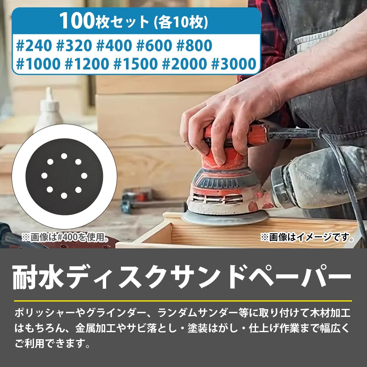 耐水 10種 100枚 125mm サンドペーパー 丸型 8穴 サンダー マジックパッド #240-#3000 各10枚 ディスク ペーパー 紙やすり