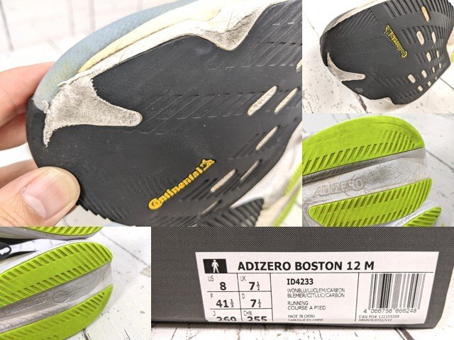 ランニングシューズ メーカー:adidas モデル:アディゼロ ボストン 12 品番:ID4232 カラー:ワンダーブルー/ルシッドレモン/カーボン サイズ:26.0cm 重さ(片方当たり):約227g ・生地に破れが御座います。 -------------------- その他多数商品を出品中!! 出品商品一覧は→こちらをクリック -------------------- | ||||||||||||