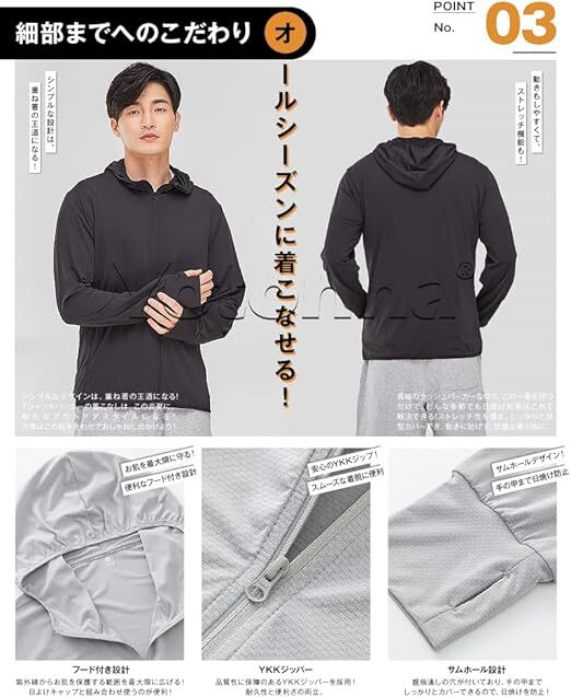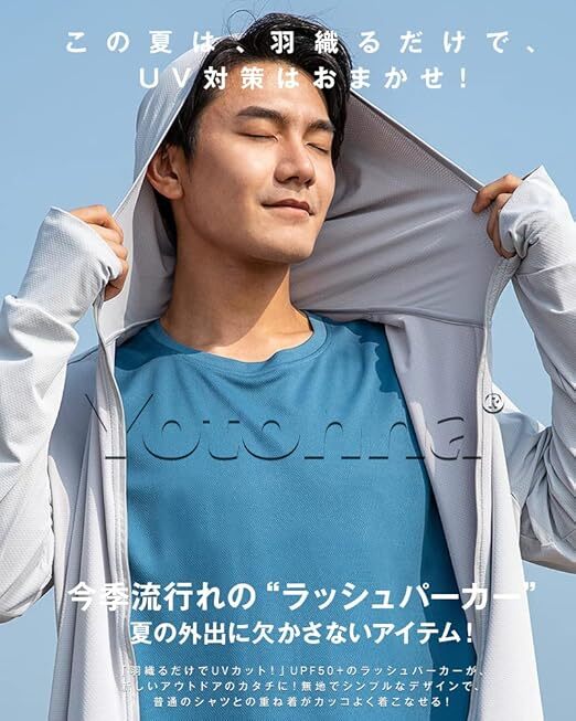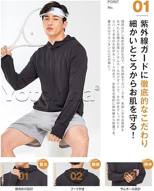 ◎Yotonna(ヨトンナ) ラッシュパーカー ラッシュガード 長袖 メンズ [UVカット UPF50+・高伸縮性・YKKジップ] 透けない 日焼け対策 パーカー フード付き 紫外線対策 サムホール付き 無地 メッシュ素材 サイズ:XL | ||||
