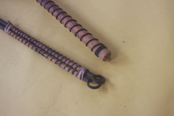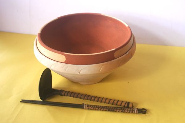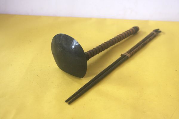 半田焙烙4点セット 一双 素焼(筋半田・巴半田・長火箸・底取)灰器 水屋道具 風炉 茶道具 炭道具 炭所望/27N8.7-169