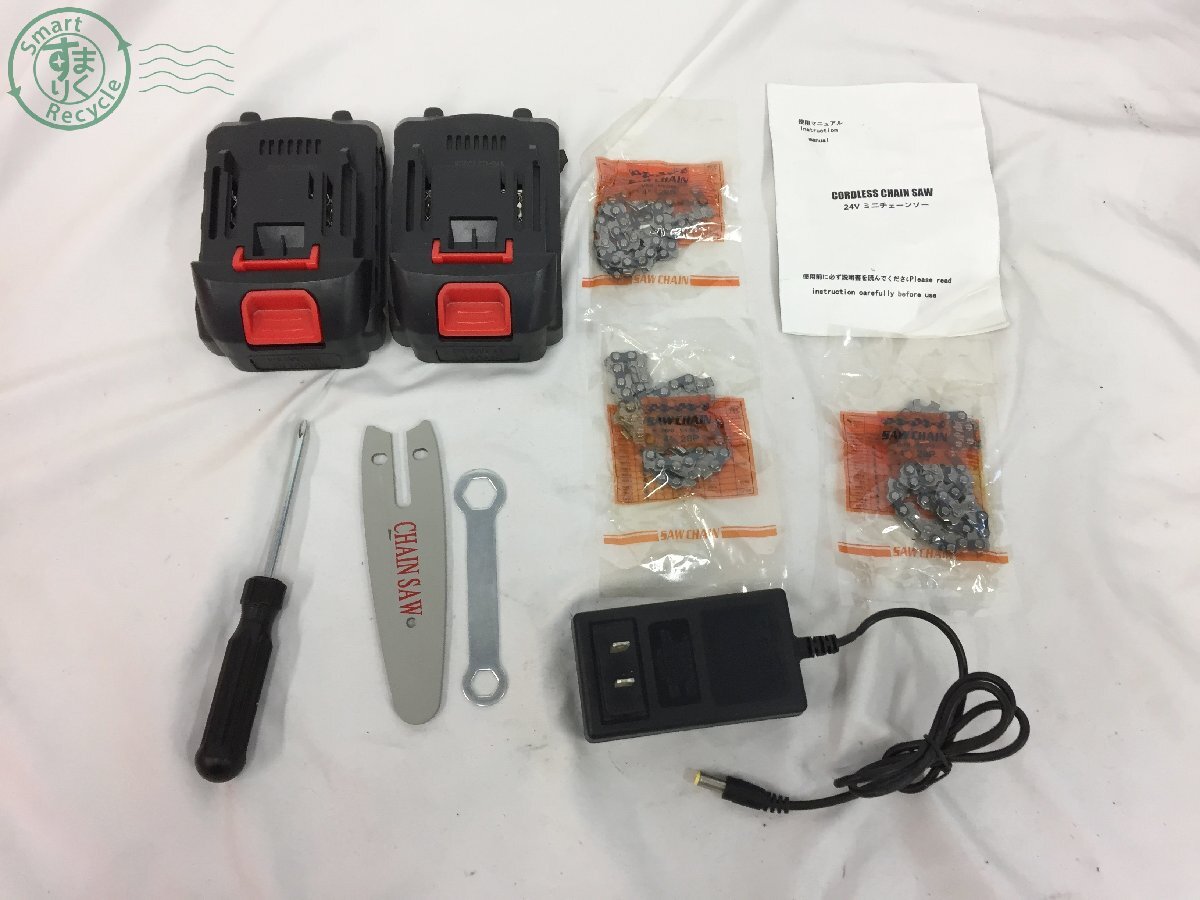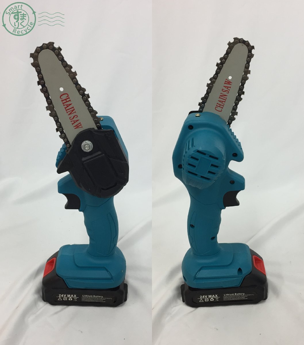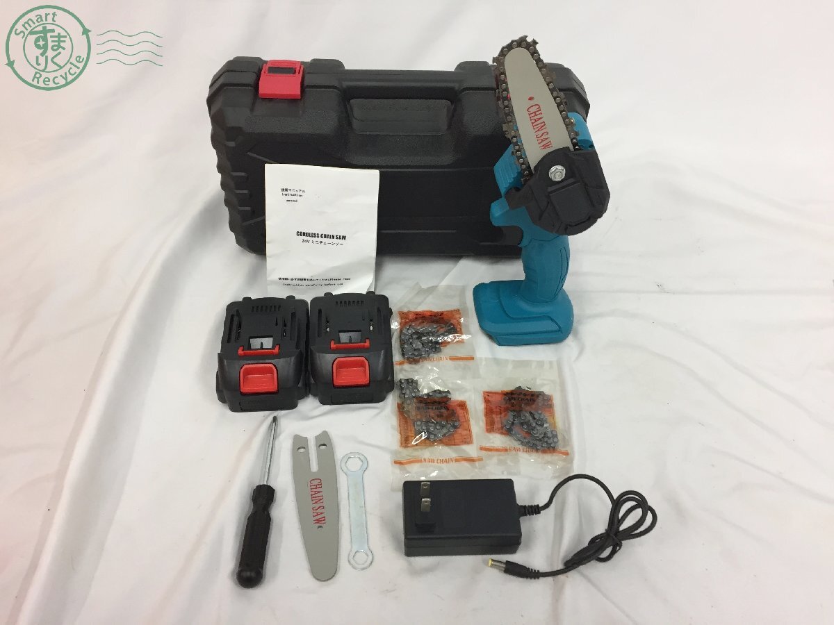 △ チェーンソー 小型 充電式 コードレス 電動工具 DIY バッテリー 2個 替刃 ケース付き ジャンク品 現状品 中古品 used品 | |||