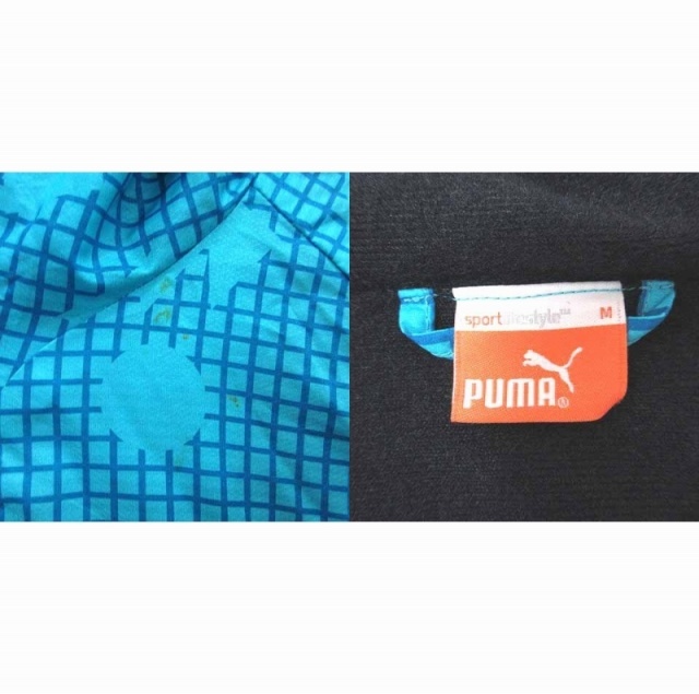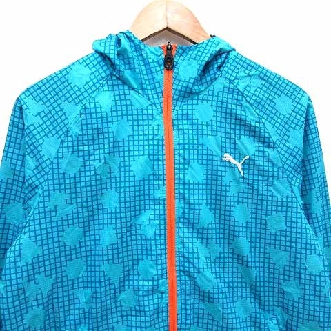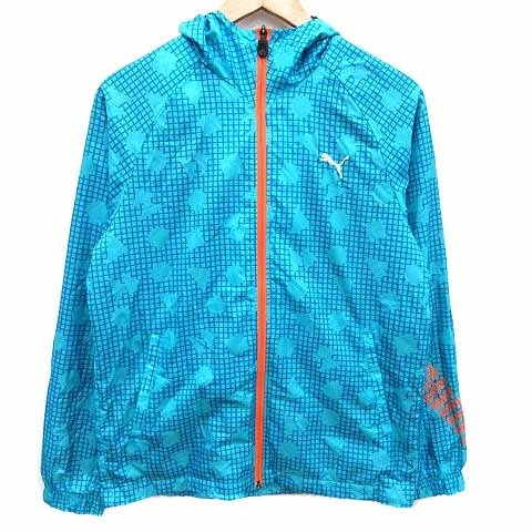 プーマ PUMA パーカー ジャケット ジップアップ チェック 総柄 長袖 M 青 水色 ライトブルー /YK レディース