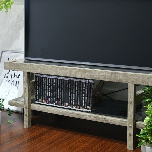 優しい色調で味わい深い古木風シートと美しい強化ガラスを組み合わせたデザインが、 お部屋全体にすっきりとした印象を与えるテレビ台。 圧迫感のないシンプルなデザインは、お気に入りの小物や観葉植物、ドライフラワーなどを一層際立たせてくれます。 40インチのテレビにも対応しており、棚にはレコーダーやDVD、Blu-rayなどのメディア類を収納できます。 |