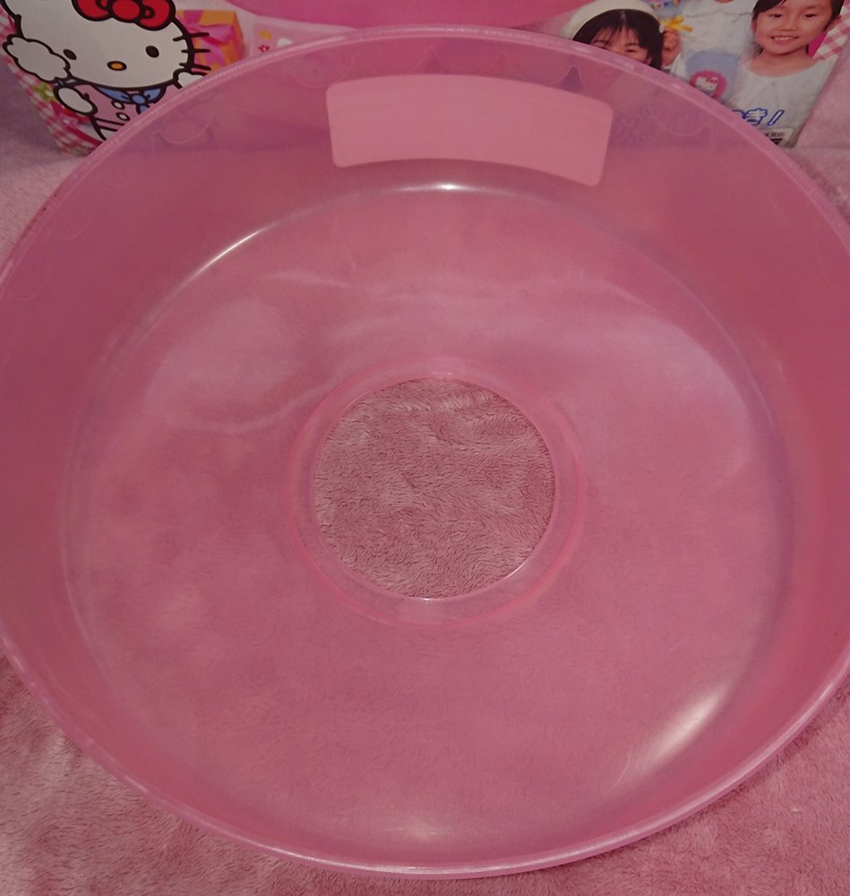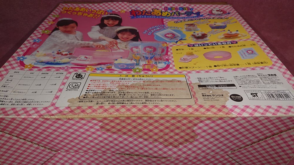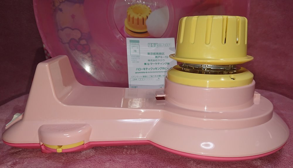 ●説明書、キティーちゃんの袋ありません。本体は動作品ですが 外箱にシミと変形があります。また、大きな容器にはしによる キズがあります。分解掃除しました。