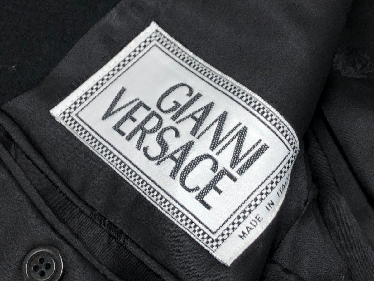 超美品【GIANNI VERSACE ジャンニヴェルサーチ】ダブル2ボタン メデューサ裏地 スーツ (メンズ) 48/M 黒 起毛生地 イタリア製◇35RMS2442◇