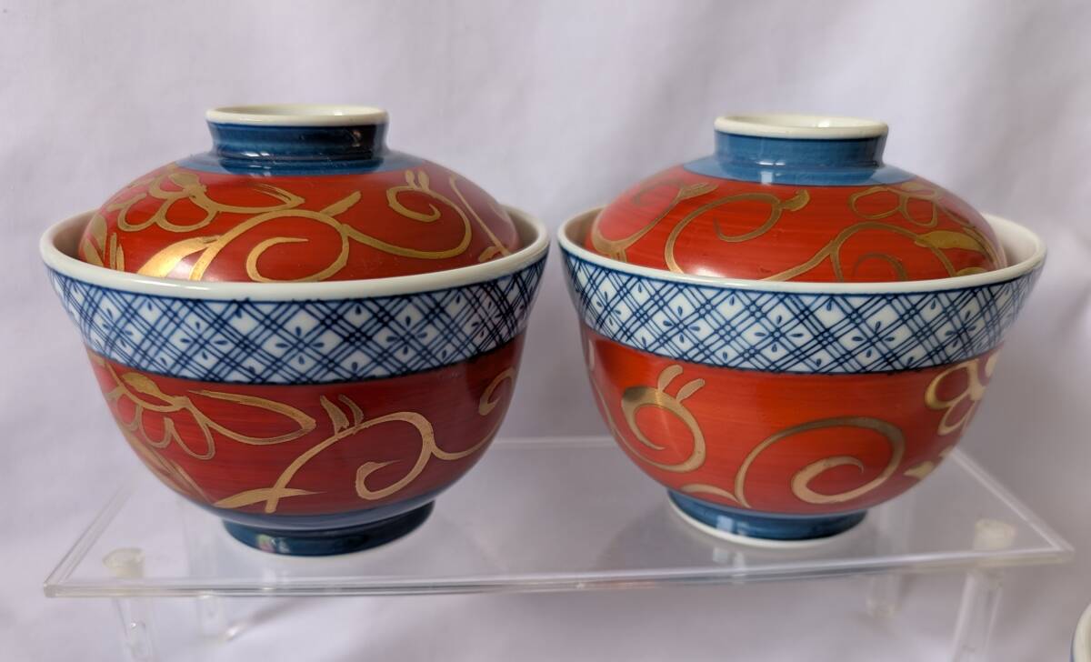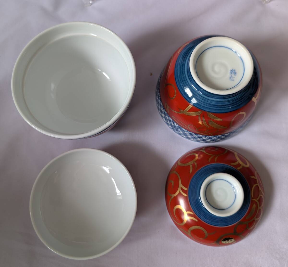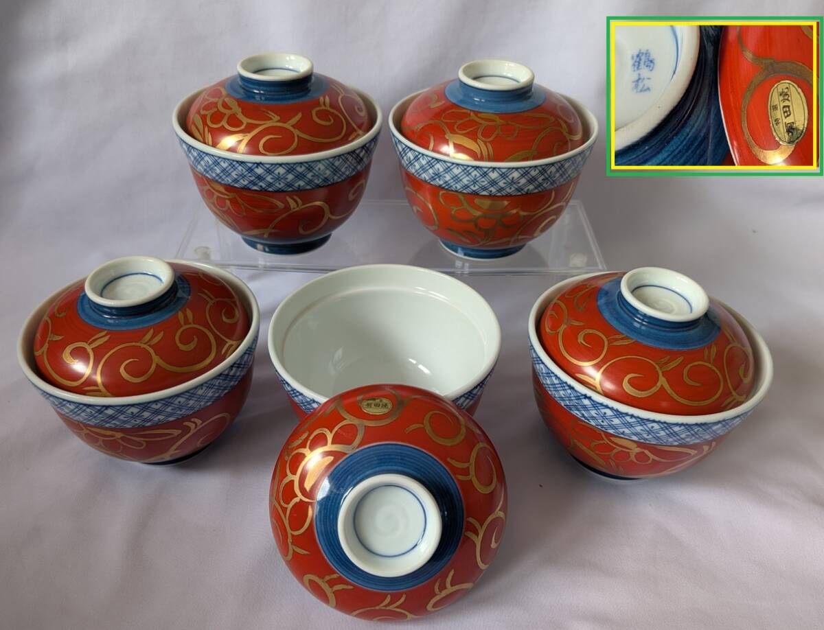 有田焼 鶴松作 赤金彩 蓋付き丼ぶり揃 5客セット  蓋付き丼 ご飯 どんぶり 茶碗 *海老しんじょう器に! 松茸ご飯茶碗!