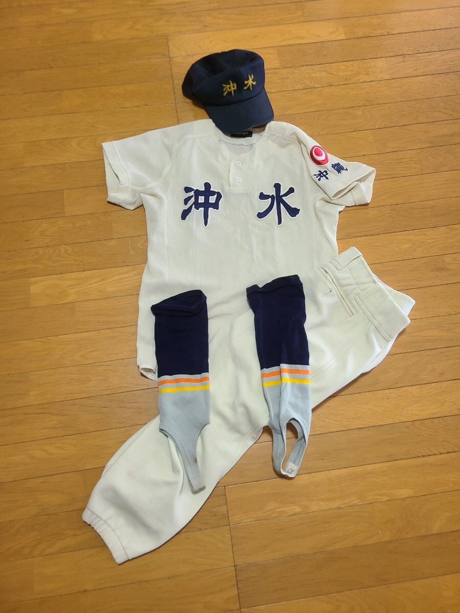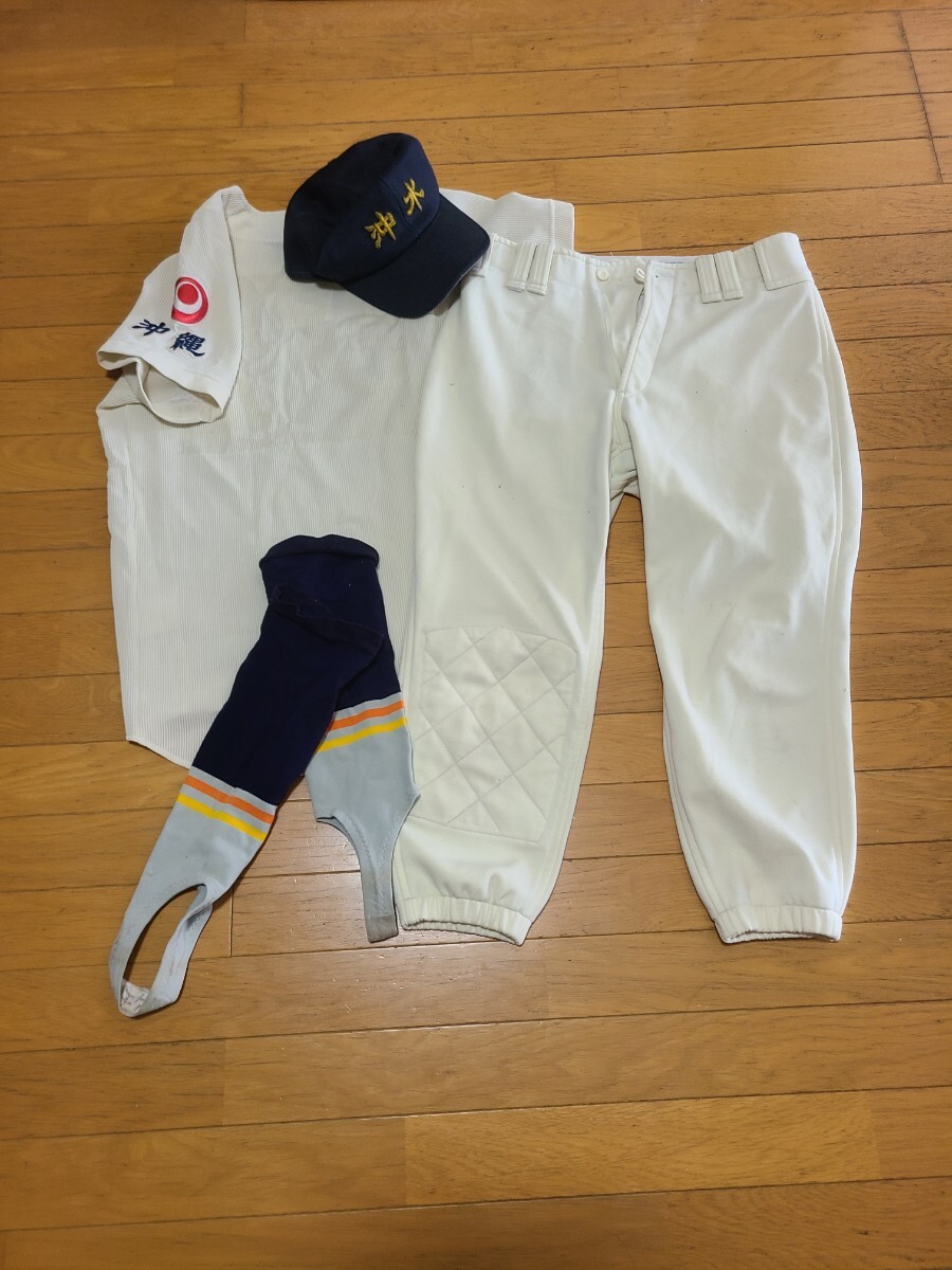 公式戦ユニフォーム上下と公式戦ストッキングと公式戦帽子の4点セットです。