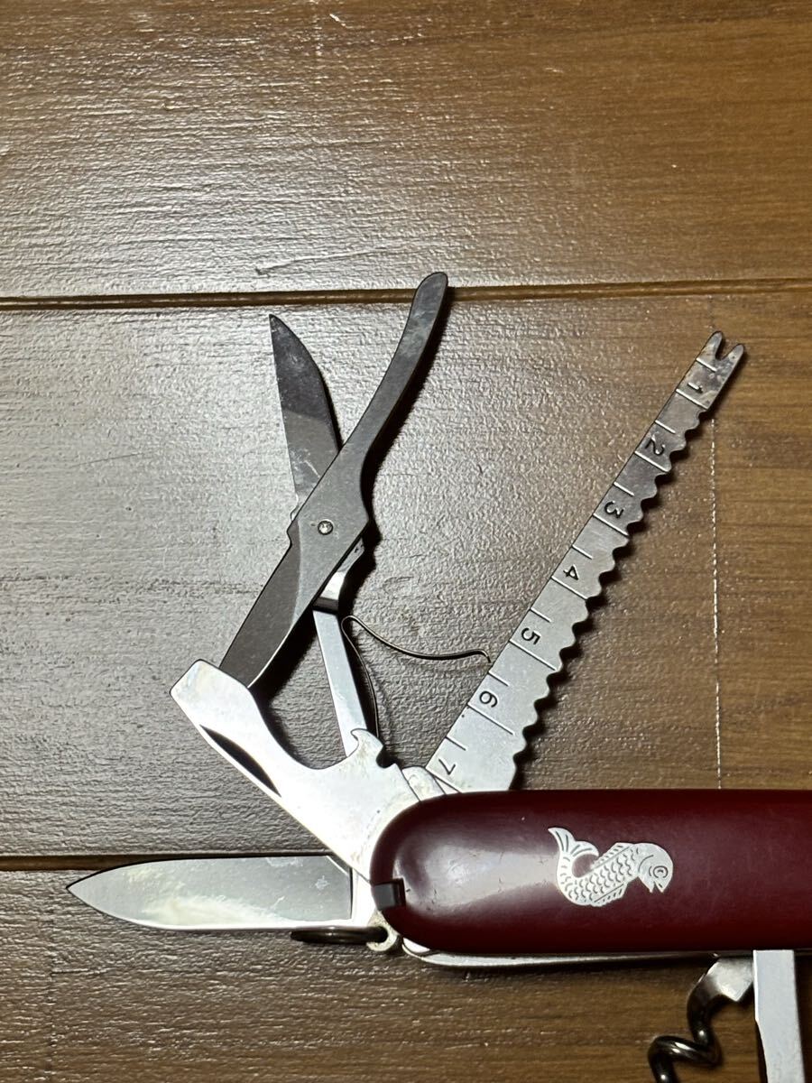 うろこ落としやはり外し、スケールなどがついた釣人向けのモデルです。姉妹モデル「フィッシャーマン」に対し、ハサミの代わりに「プライヤー」、プラスドライバーの代わりに「コルク抜き」をを搭載しています。ハンドル部分の魚のマークが目印です。