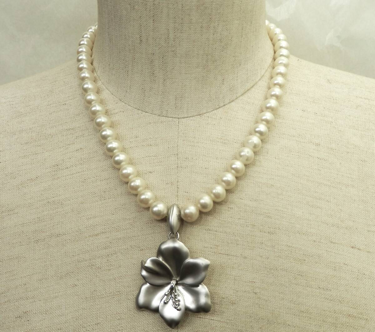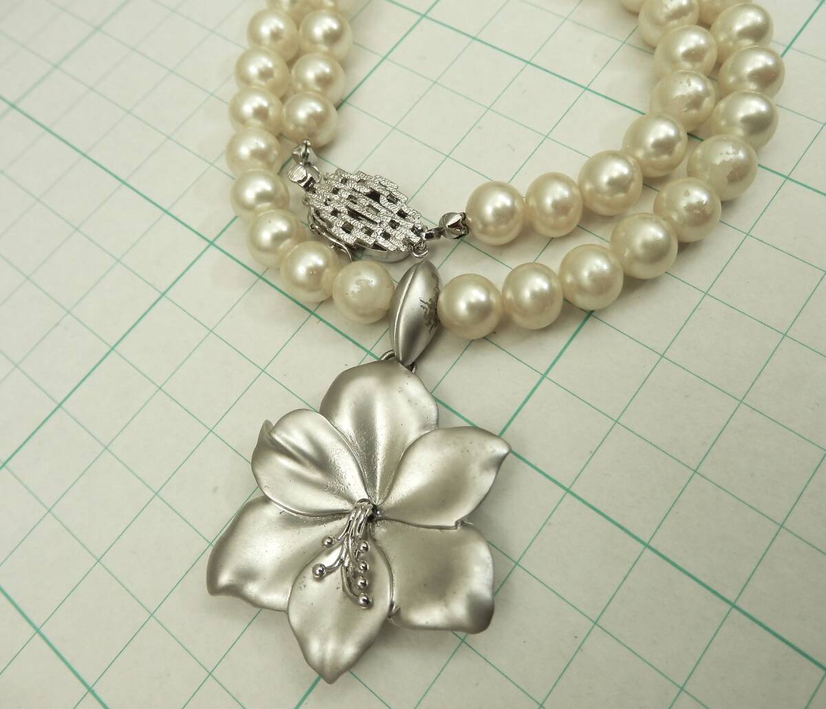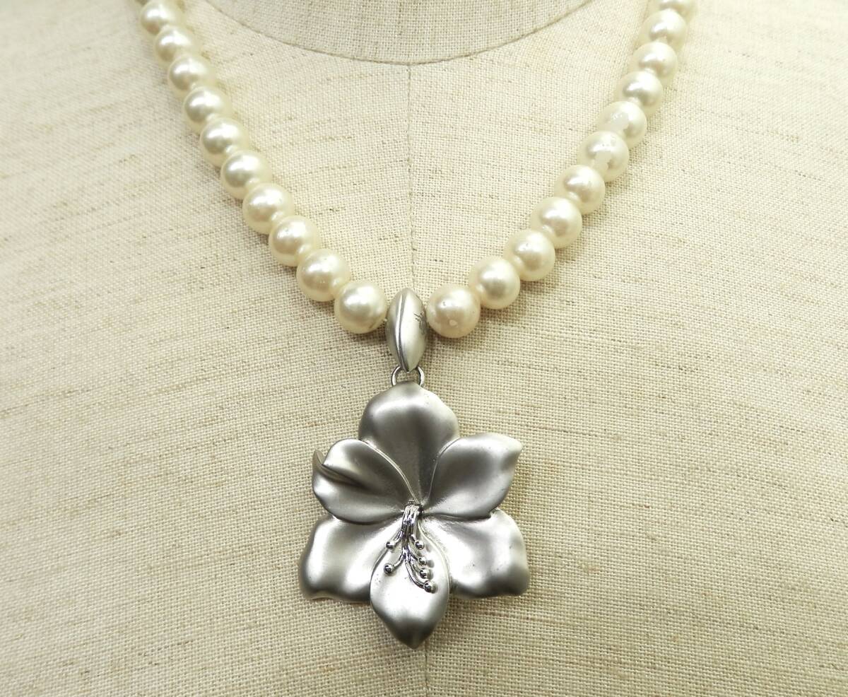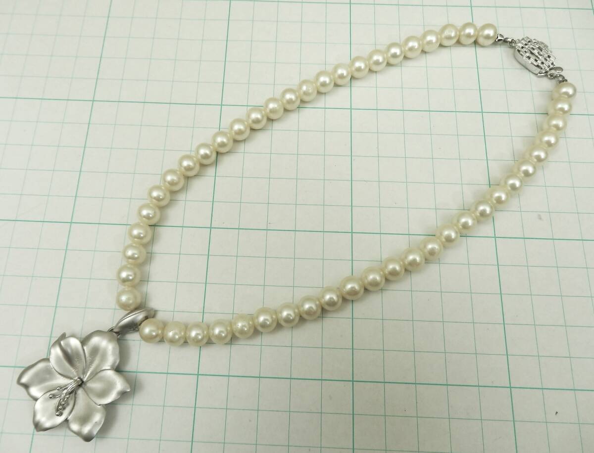 商品名 | SILVER・ダブルロック留め具 パール・真珠 La Valse ペンダントネックレス 42cm 約51.3g 現状品 売り切り |