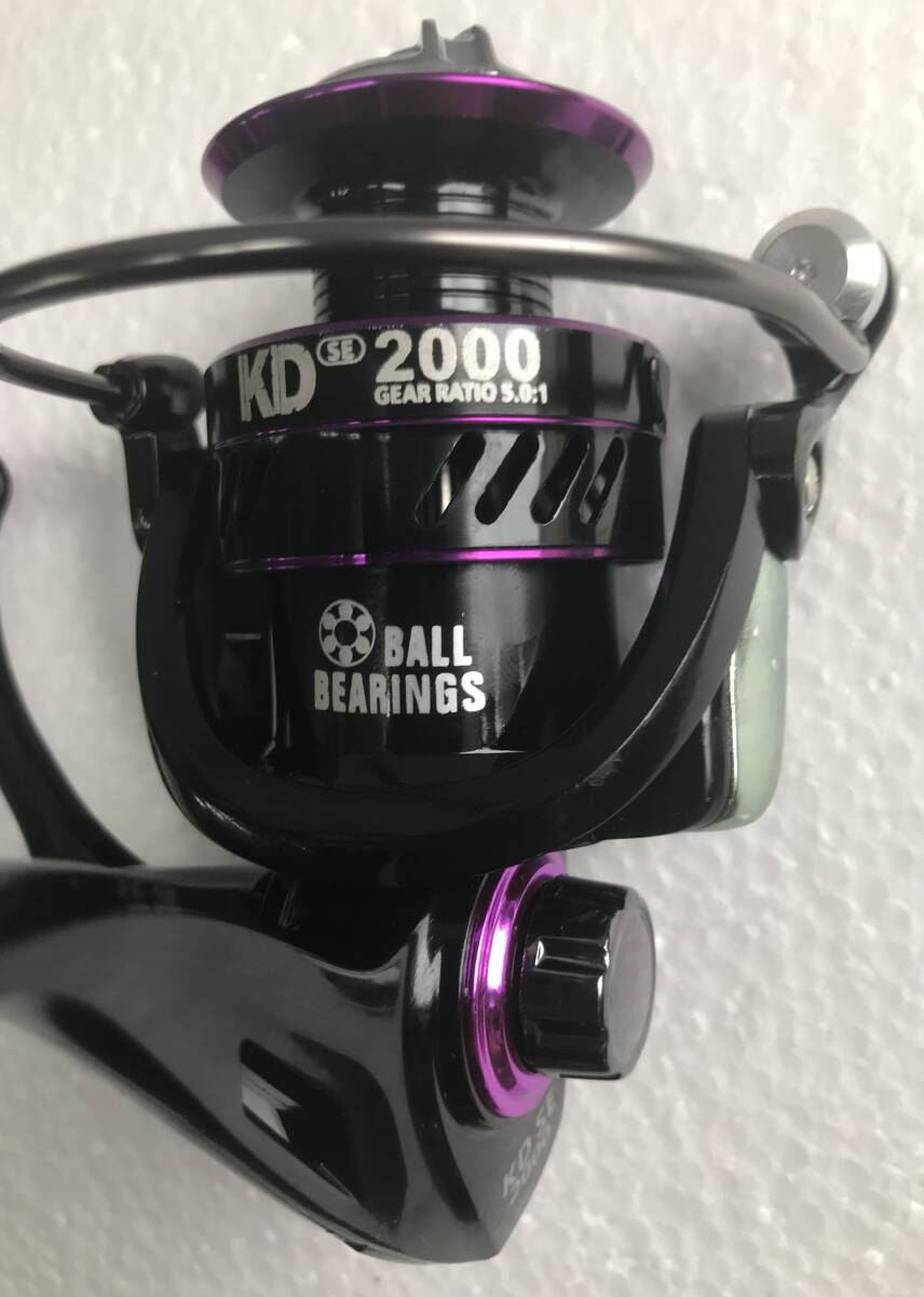 写真のスピニングリール2000ブラックパープル ロータリーグリップ(新品未使用)を発送します(送料無料)。